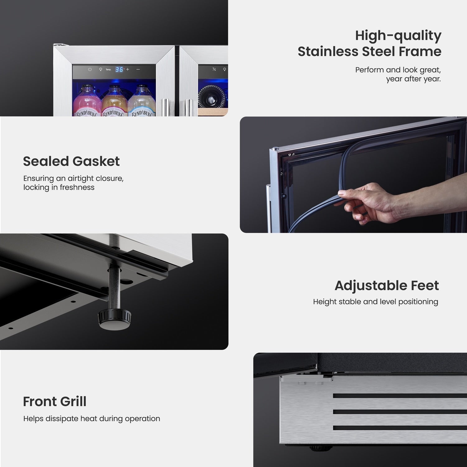 - Secure and Stylish Design: UV-resistant glass and stainless steel construction add durability. This wine beverage cooler also complements any home decor with its sleek design.