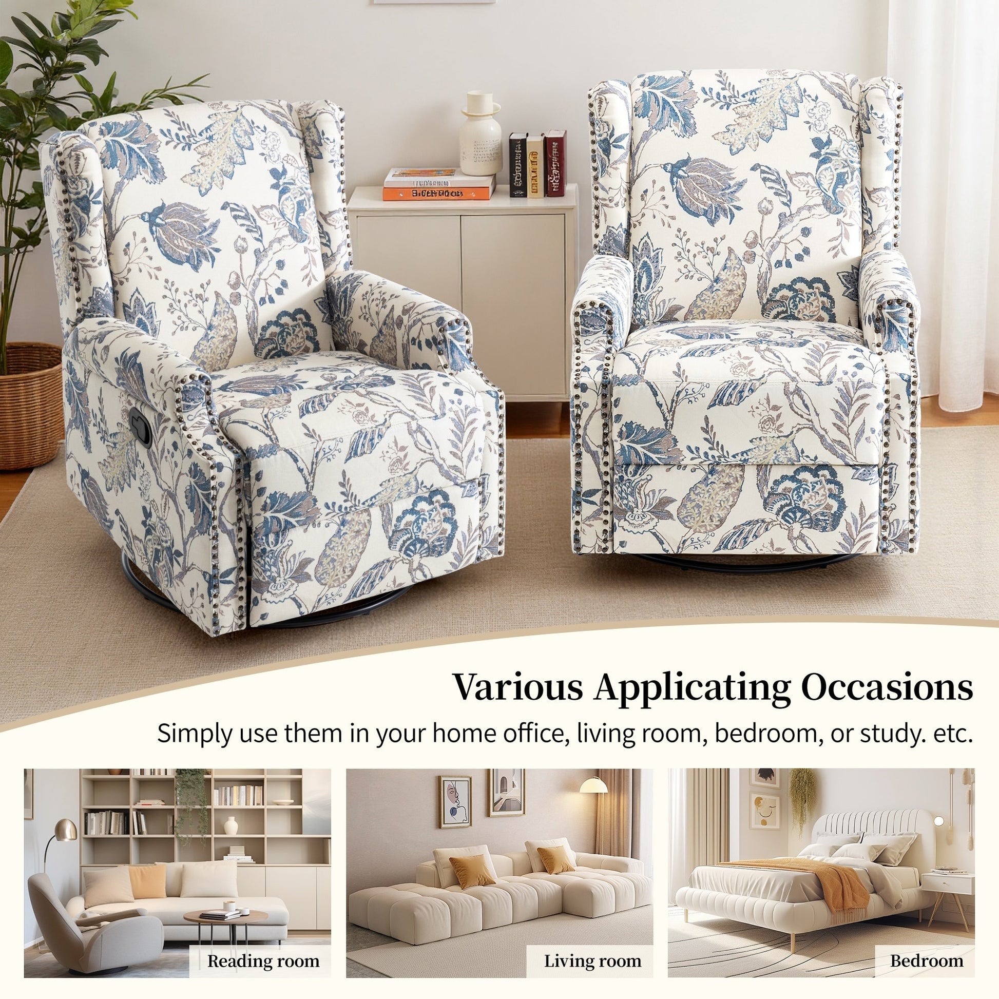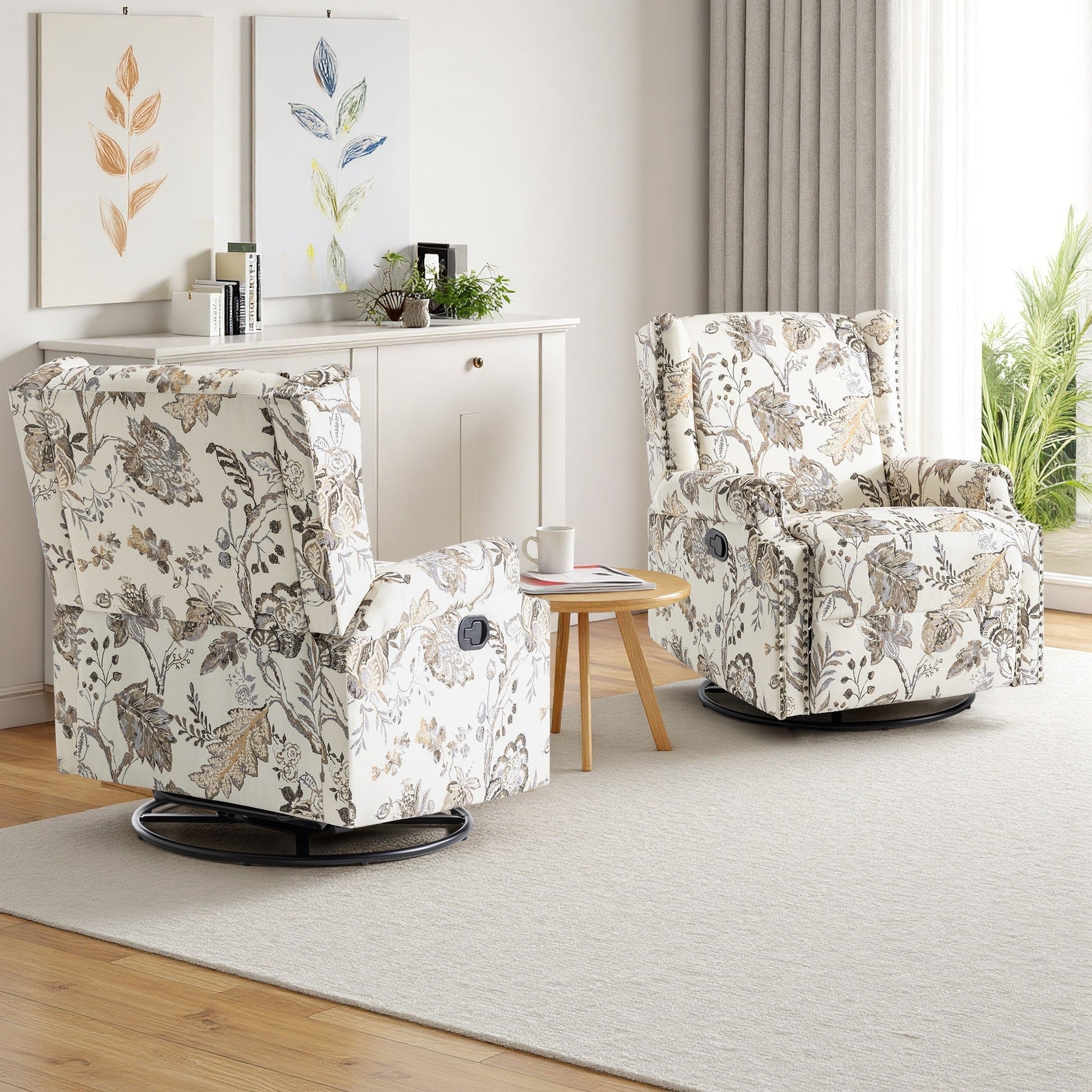 29'' W Pattern Swivel Glider Manual Push Back Recliner Chair Set of 2
