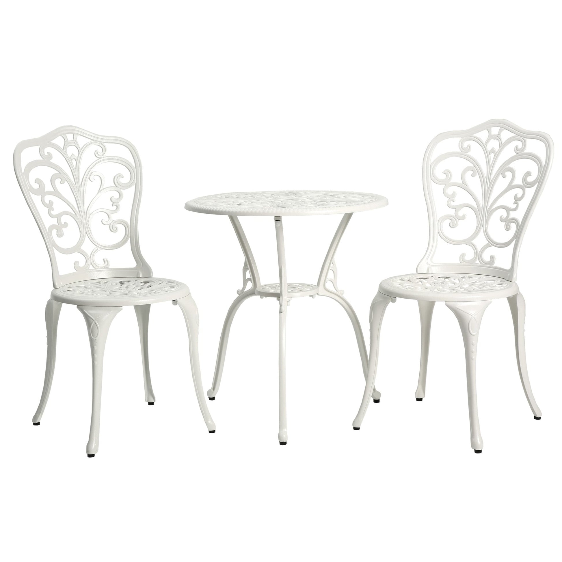 Enjoy your outdoor space with this 3-piece aluminum bistro table set, featuring exquisite butterfly carvings and antique copper finishes. Made of durable cast aluminum with anti-rust and weatherproof treatment, this set is suitable for all-weather use and can withstand oxidation. With a built-in 1.75 inch umbrella hole, you can add a 7.5-foot umbrella (not included) to protect you from the sun and rain. Easy to clean and assemble, this set is perfect for decorating your yard, poolside, terrace, garden, or porch.