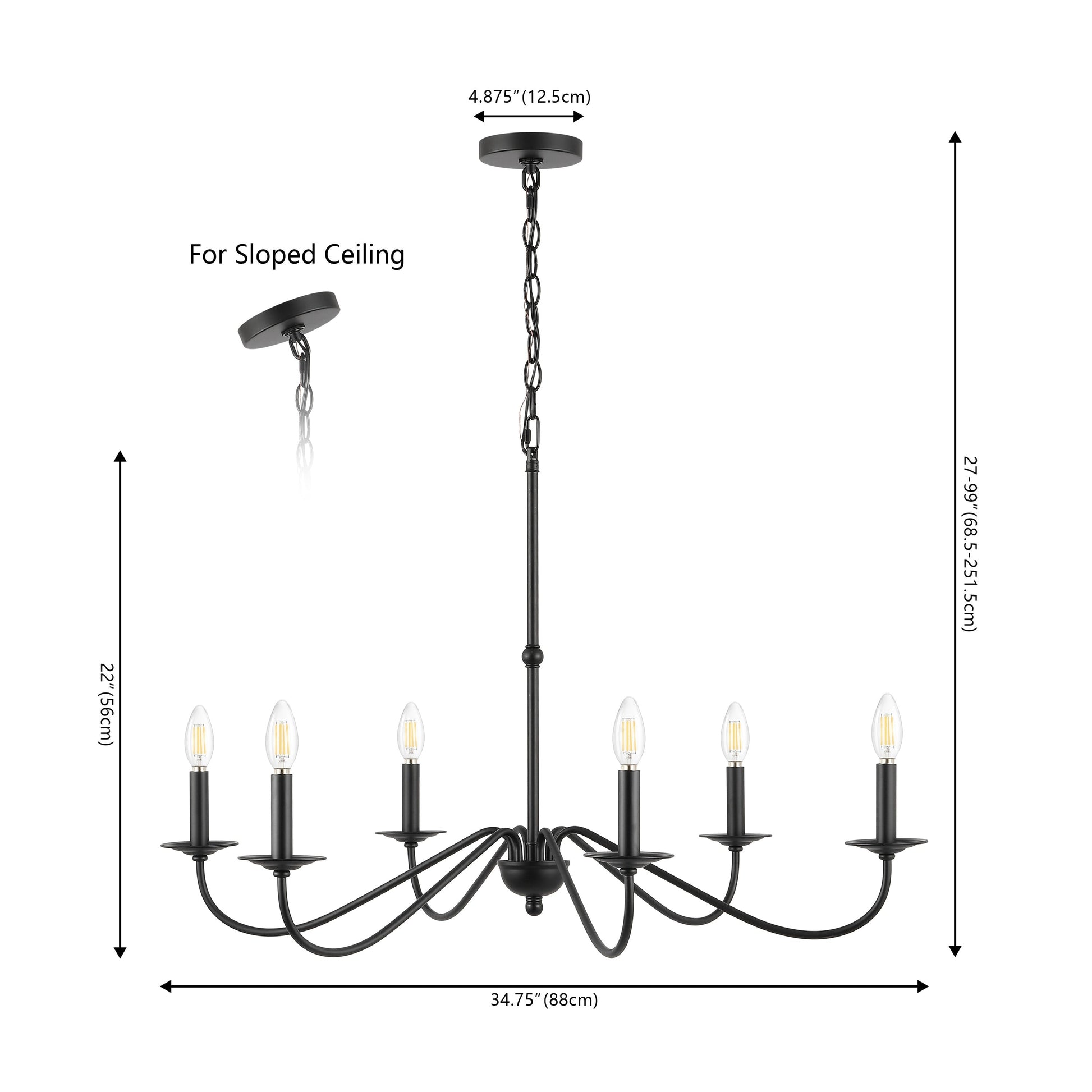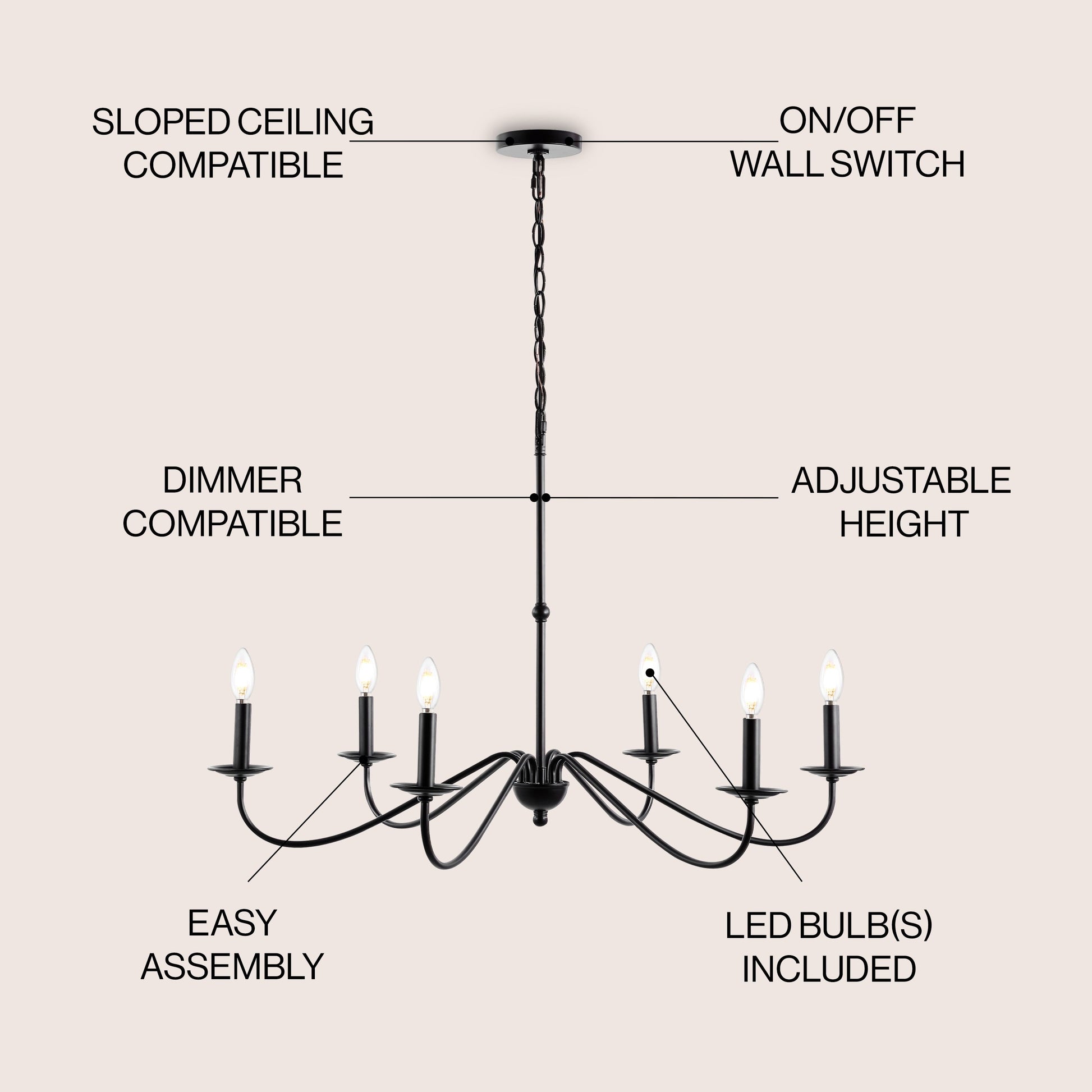 Based on historic wrought iron chandeliers, our rustic 6-light design features a quality finish. Perfectly sized for a farmhouse dining room, tall entry, or great room with high ceilings, our chandelier is just under 35' wide and features tall candles with LED candle bulbs. Use this versatile chandelier in a modern farmhouse, French country or Tuscan style home, or to add character to a rustic, industrial space.