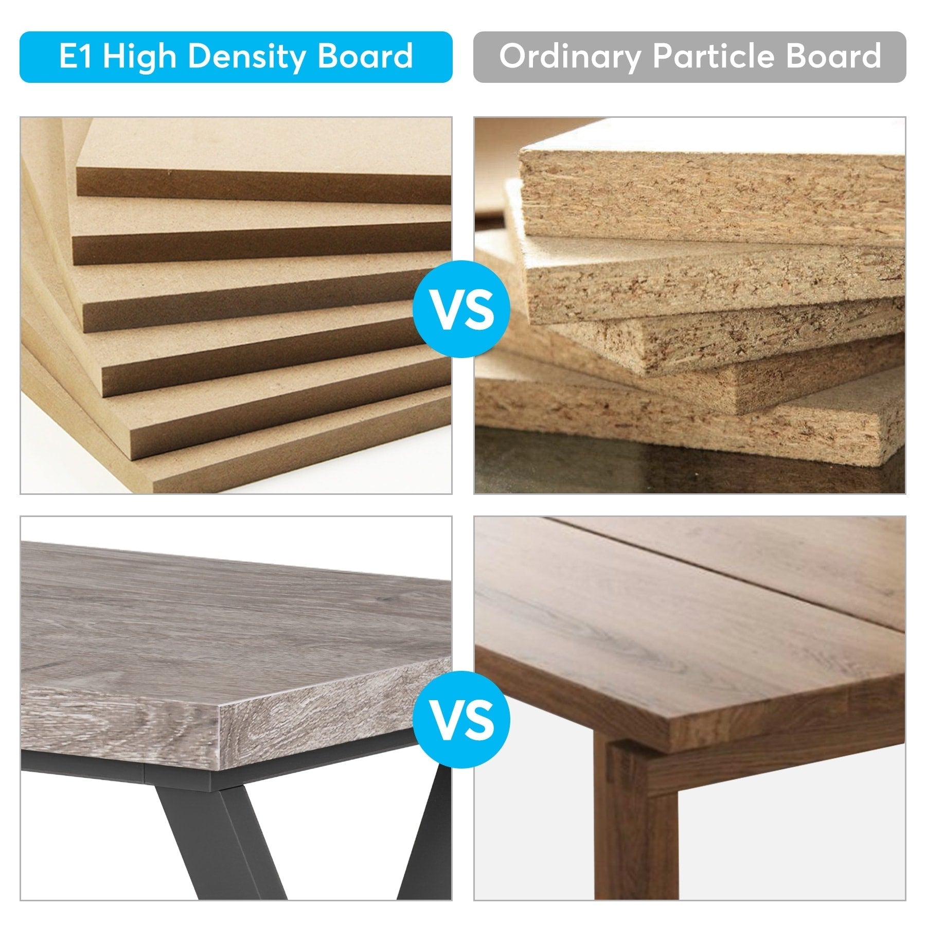 Upgrade your home office with this versatile and stylish 55' Heavy Duty Computer Desk. The rustic wood grain textured top paired with the Z-shape metal legs give your workspace an industrial and trendy look. With a high weight capacity of up to 330lbs, this desk can withstand heavy equipment and multiple monitors. The waterproof and deformation-resistant MDF tabletop ensures durability while the adjustable foot-pads provide stability on any surface. Assembly is a breeze, making it easy to elevate your workspace in no time.