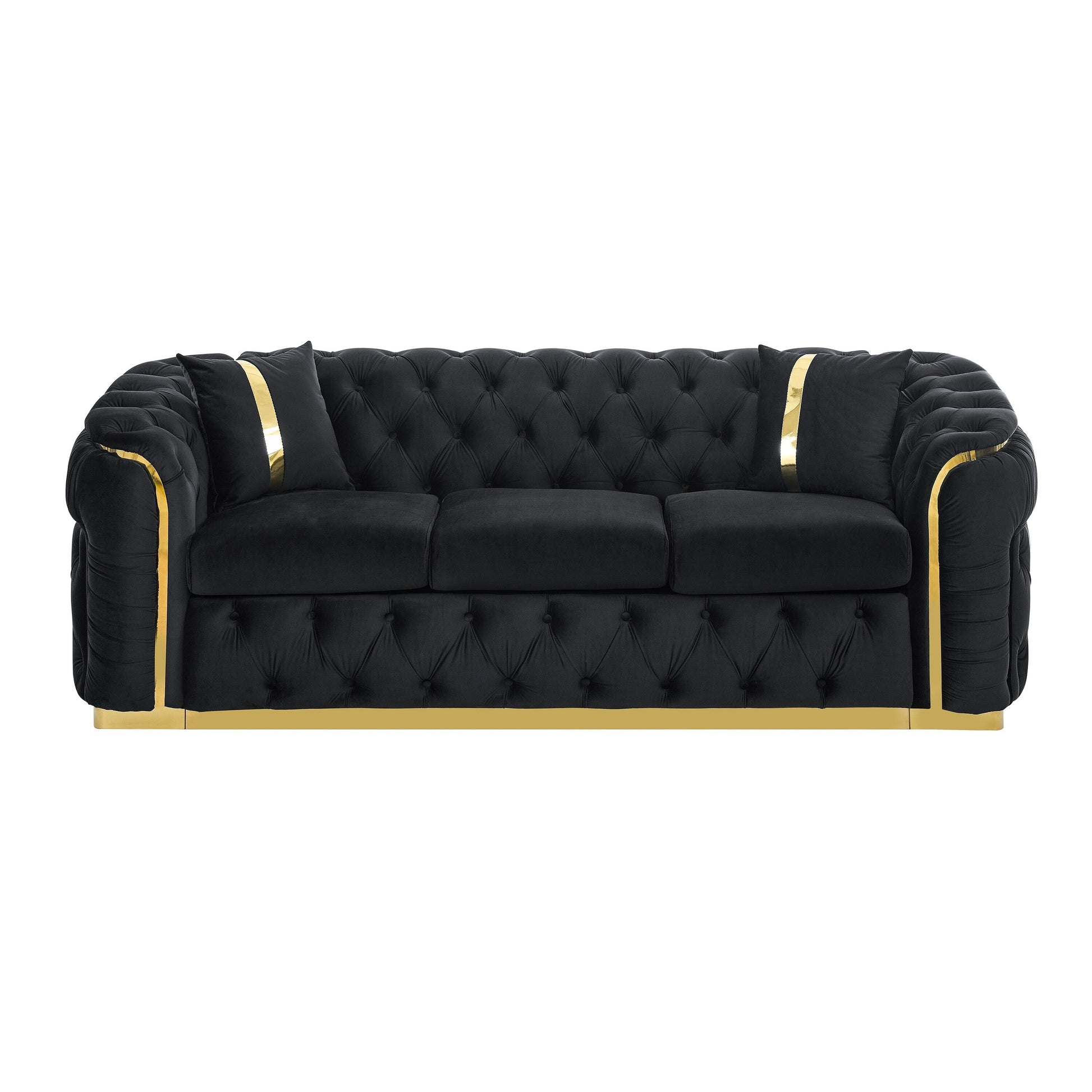 - Stylish Pillows: The sofa comes with two matching pillows, each featuring gold bar accents, which elevate the overall look while offering additional comfort.