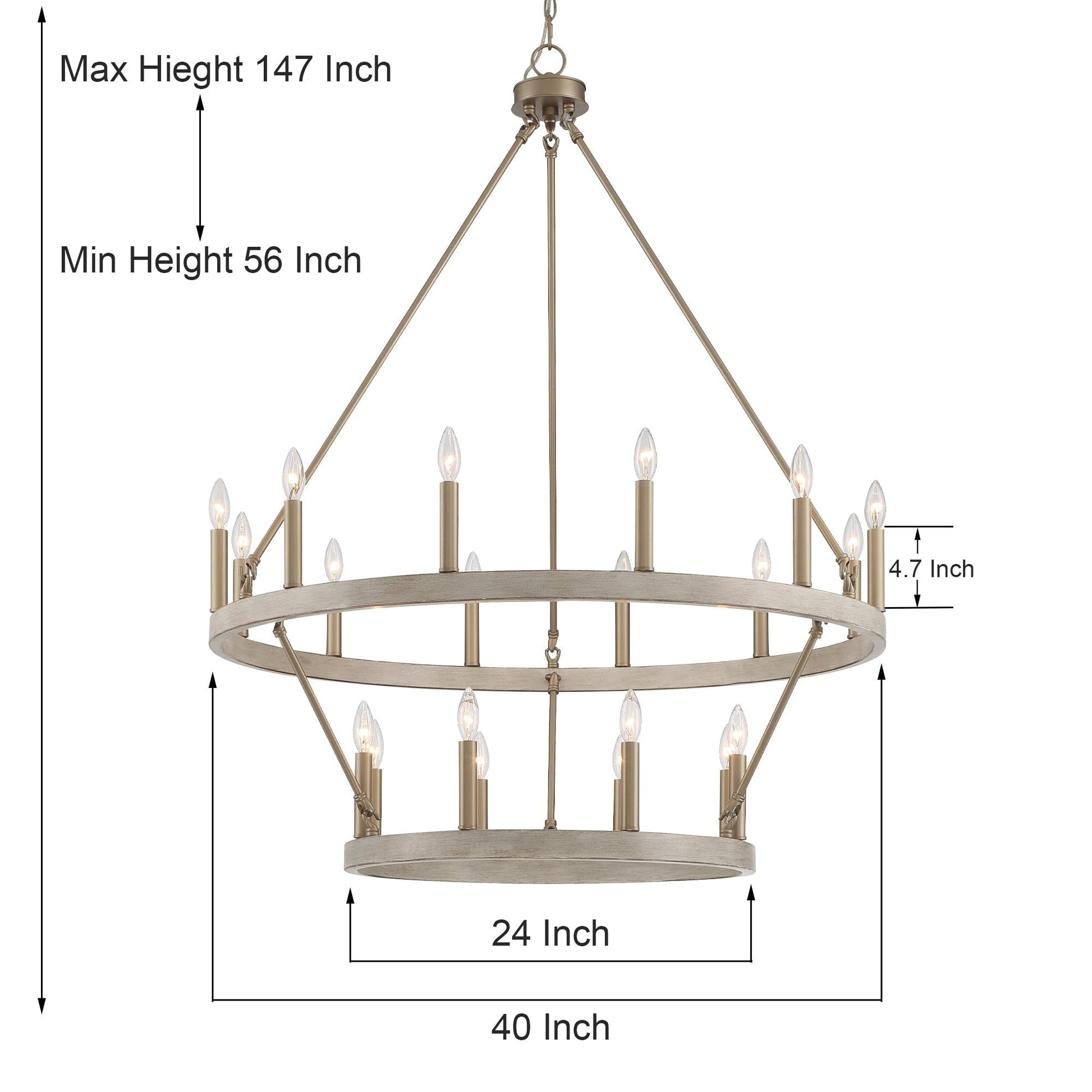 Brighten up your living space with the Farmhouse Rustic Large Wagon Wheel Chandelier, made of steel and available in a variety of colors, this chandelier is durable and adds charm to a variety of styles. With 2-tier wagon wheel and twenty candlestick, which is perfect for fully illuminating a large space like living room, dining room, and large two story foyer/ entryway. Customize your space with candle-base bulbs for a vintage french country look or stick bulbs for a modern touch.