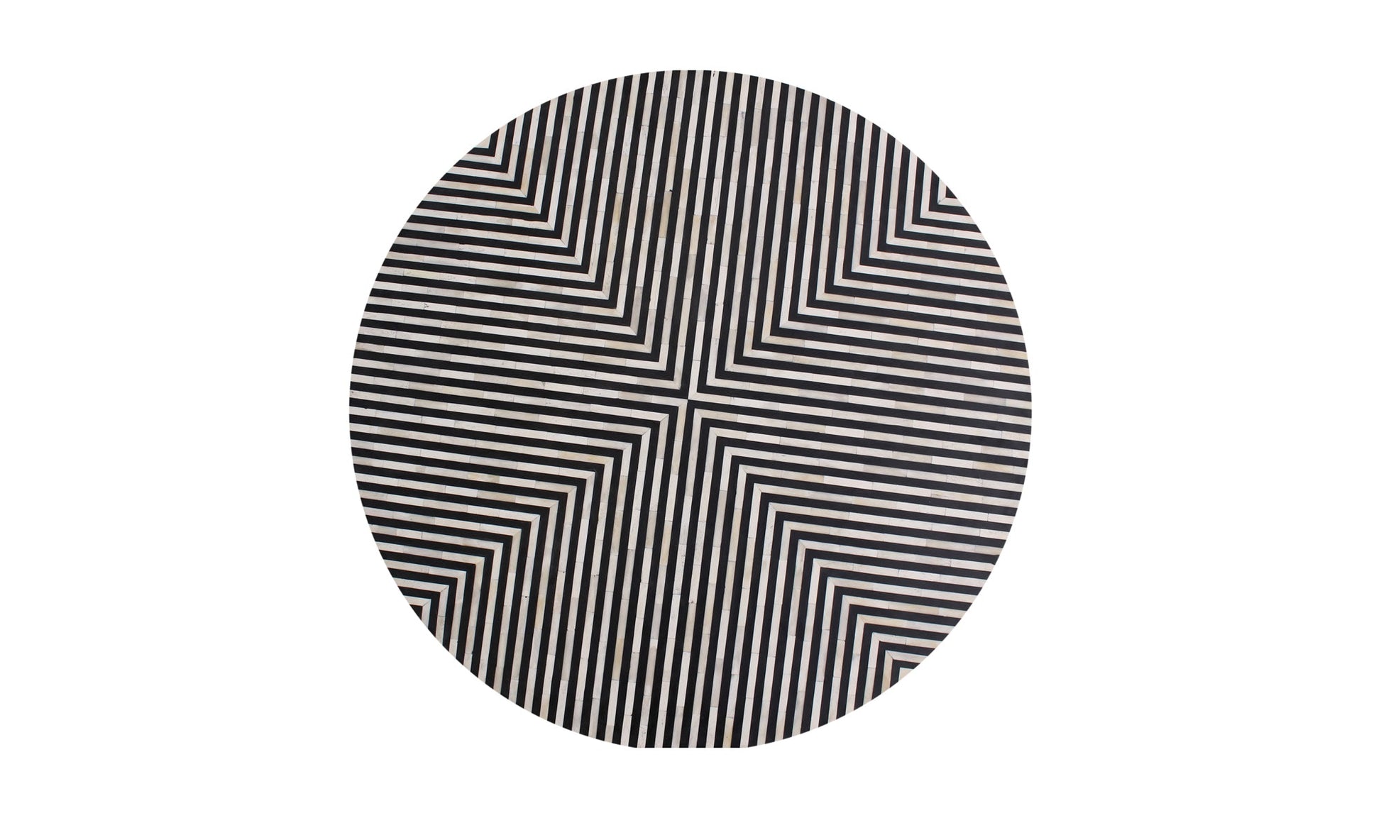 Simplistic and bold, the Alia side table is an exercise in contrast, featuring a hypnotic art deco design. A veneer of white and black camel bone and resin adds a visual statement that contrasts with its simple cylindrical construction.