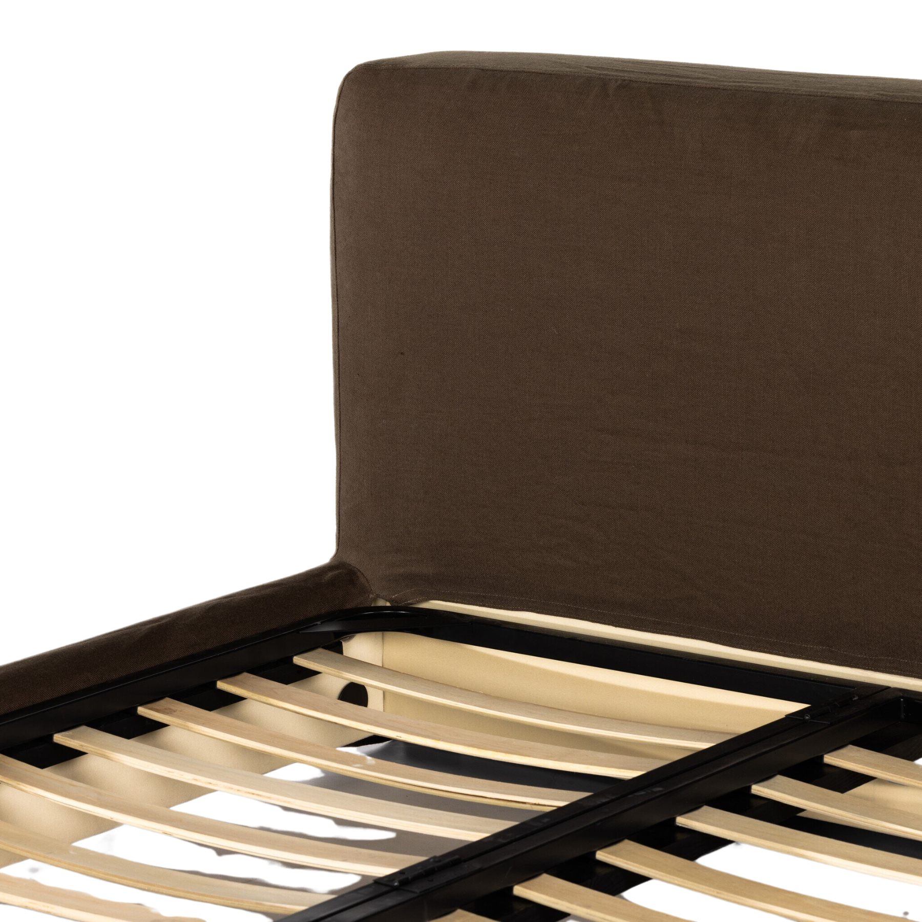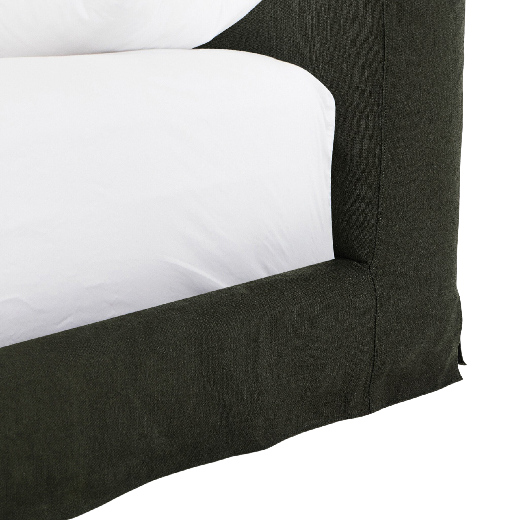 Crafted for comfort. A low, slipcovered bed features luxurious and sustainably made Belgian Linen™. Durable and soft to the touch, the linens and linen blends are artisan-made without toxic chemicals. Slipcovered styles are fully removable and machine-washable for easy care.