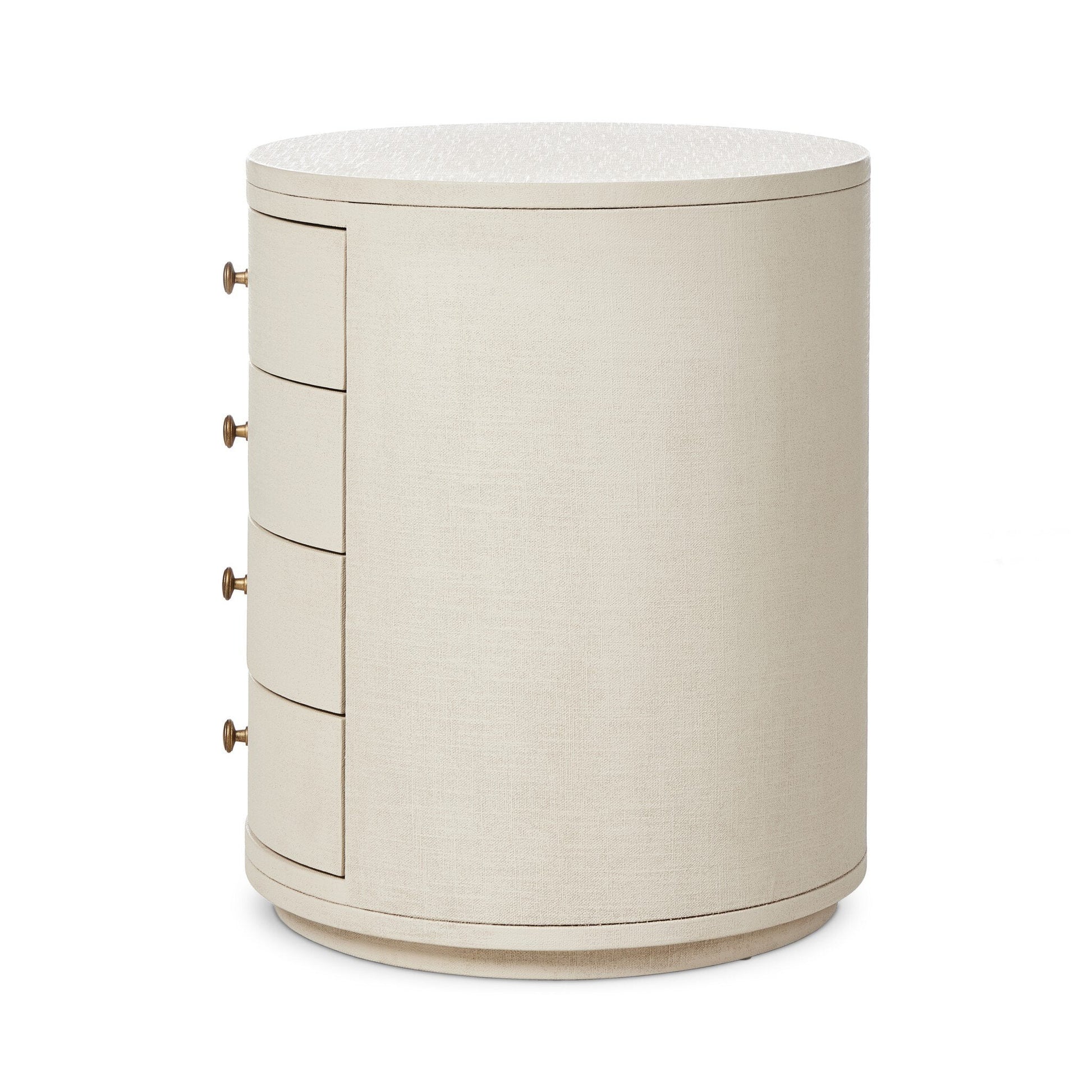 Expertly crafted from linen painted in either ivory or green, this elegantly curved nightstand features four spacious drawers, offering ample storage space for your bedside needs.