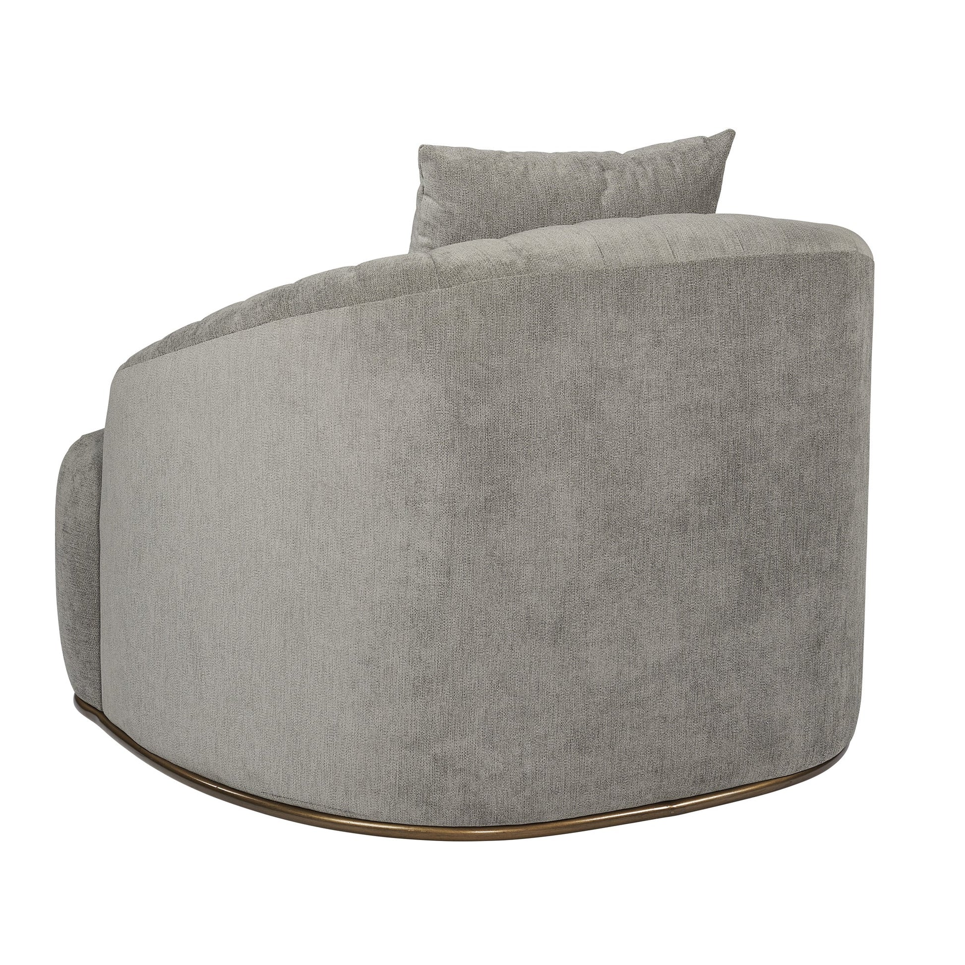 The elegant contours of this armchair create a striking yet comfortable presence in any room. It features a gracefully curved seatback with channel tufting, upholstered in luxurious merlot velvet. The design is complemented by an antique brass iron frame, adding a refined touch.