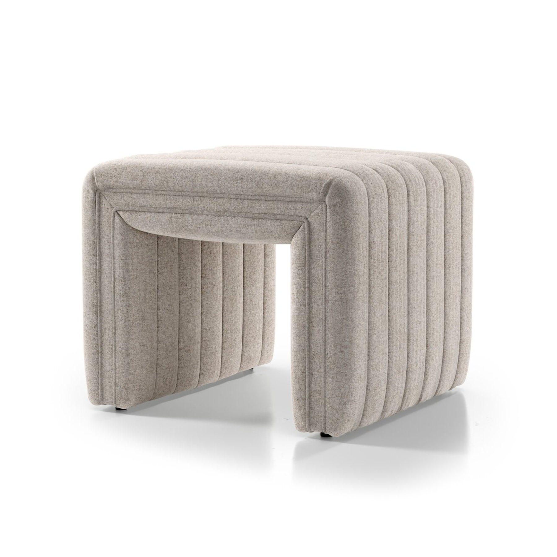 The Augustine Ottoman offers an elegant solution to enhance your living space with additional seating or a stylish surface. Its dramatic channeling adds rich texture, creating a sophisticated focal point while providing practical functionality. Perfect for layering in any room, this ottoman combines expert craftsmanship with versatile design.