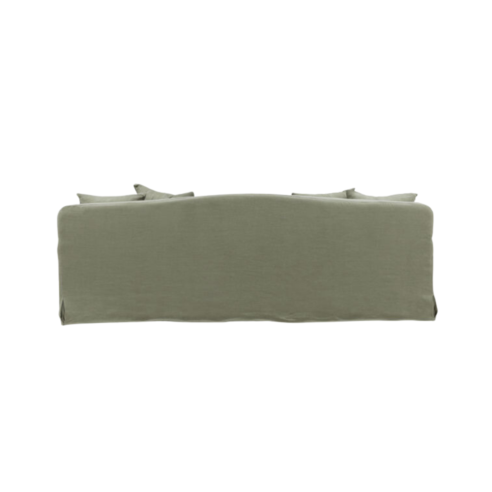 The Azer 96' Sofa boasts a slipcover for easy maintenance and a soft forest green color. Its traditional silhouette is given a modern touch with elegant detailing, while providing unparalleled comfort. Experience the perfect blend of traditional and contemporary design with the Azer Sofa.