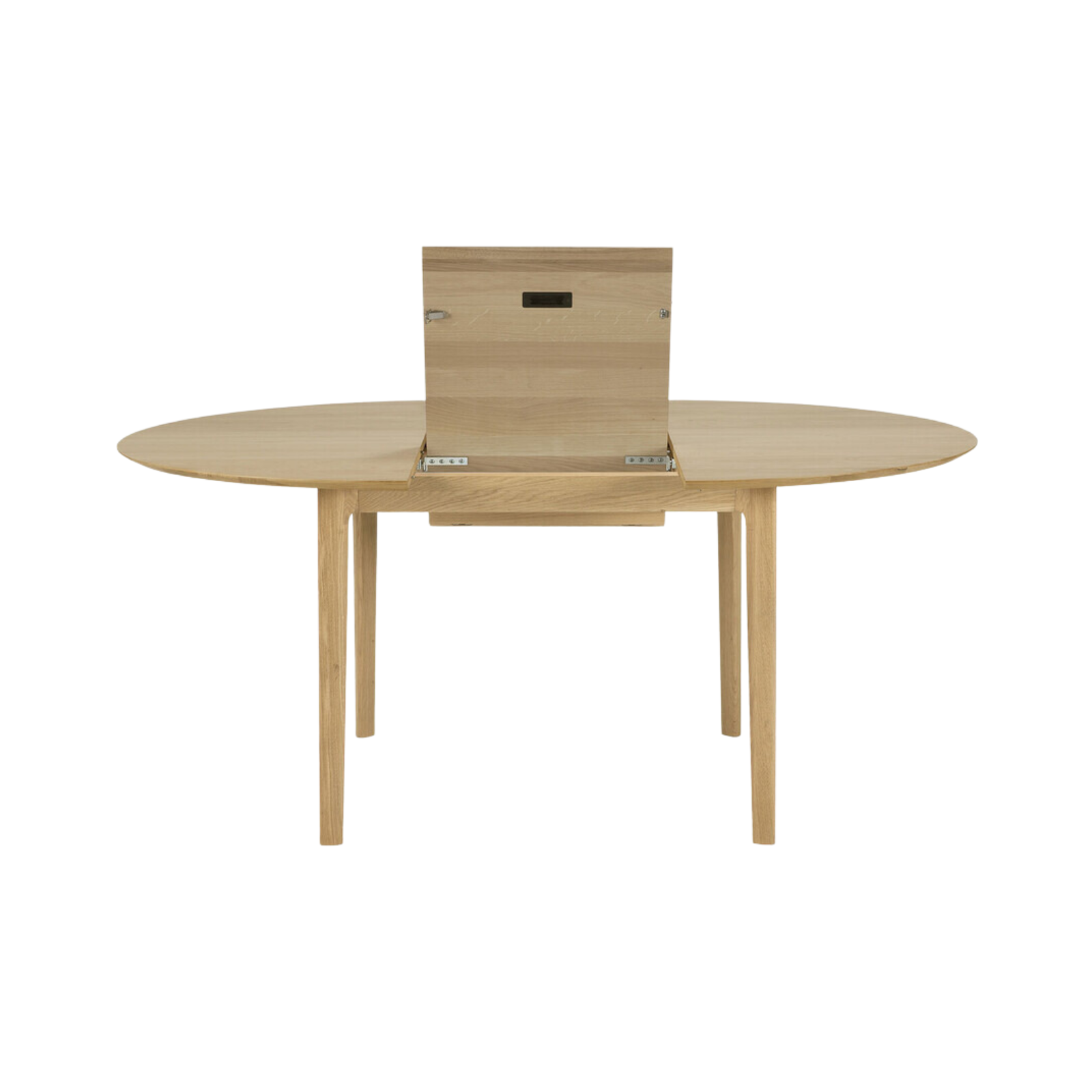 Beautifully crafted with sculptural elegance and contemporary design, the Bok Extendable Dining Table elevates the dining experience with its airy form and solid oak construction. Its adaptability makes the timeless style the perfect fit for any dining room.