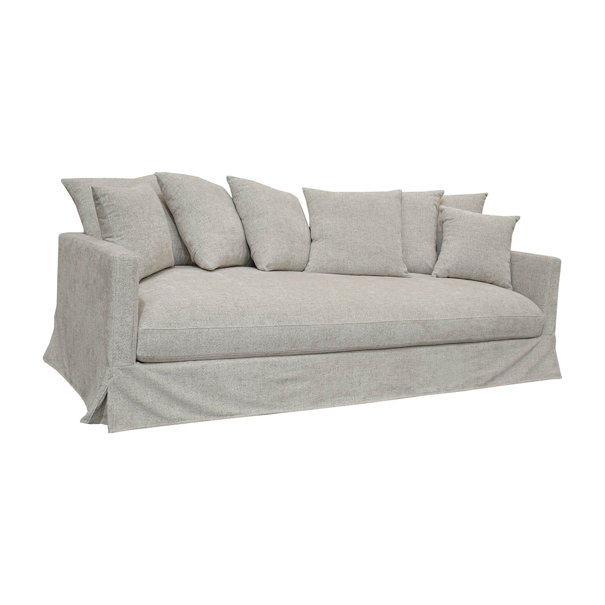 Indulge in relaxation with this sofa, upholstered in a soft, 100% polyester fabric in a subtle neutral shade. Designed for superior comfort, it includes seven plush accent cushions filled with a premium blend of goose feathers and polyester fiber, providing a luxurious, lounge-worthy experience.