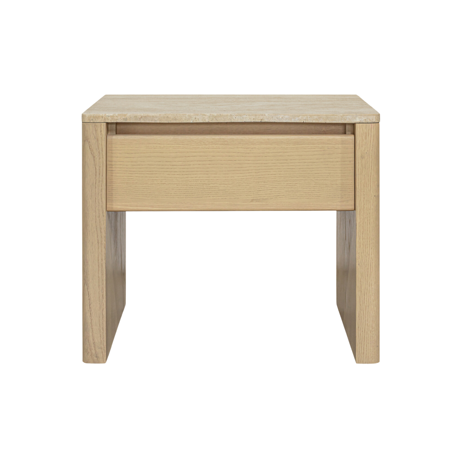 Introducing the Brooklyn Nightstand, where natural beauty meets graceful design. Made with a travertine top and solid ash base, this nightstand exudes elegance and sophistication. The soft, bullnose-rounded edge adds a touch of refinement, perfectly complementing the warm, earthy hues of the top. Indulge in luxury with this meticulously crafted piece.
