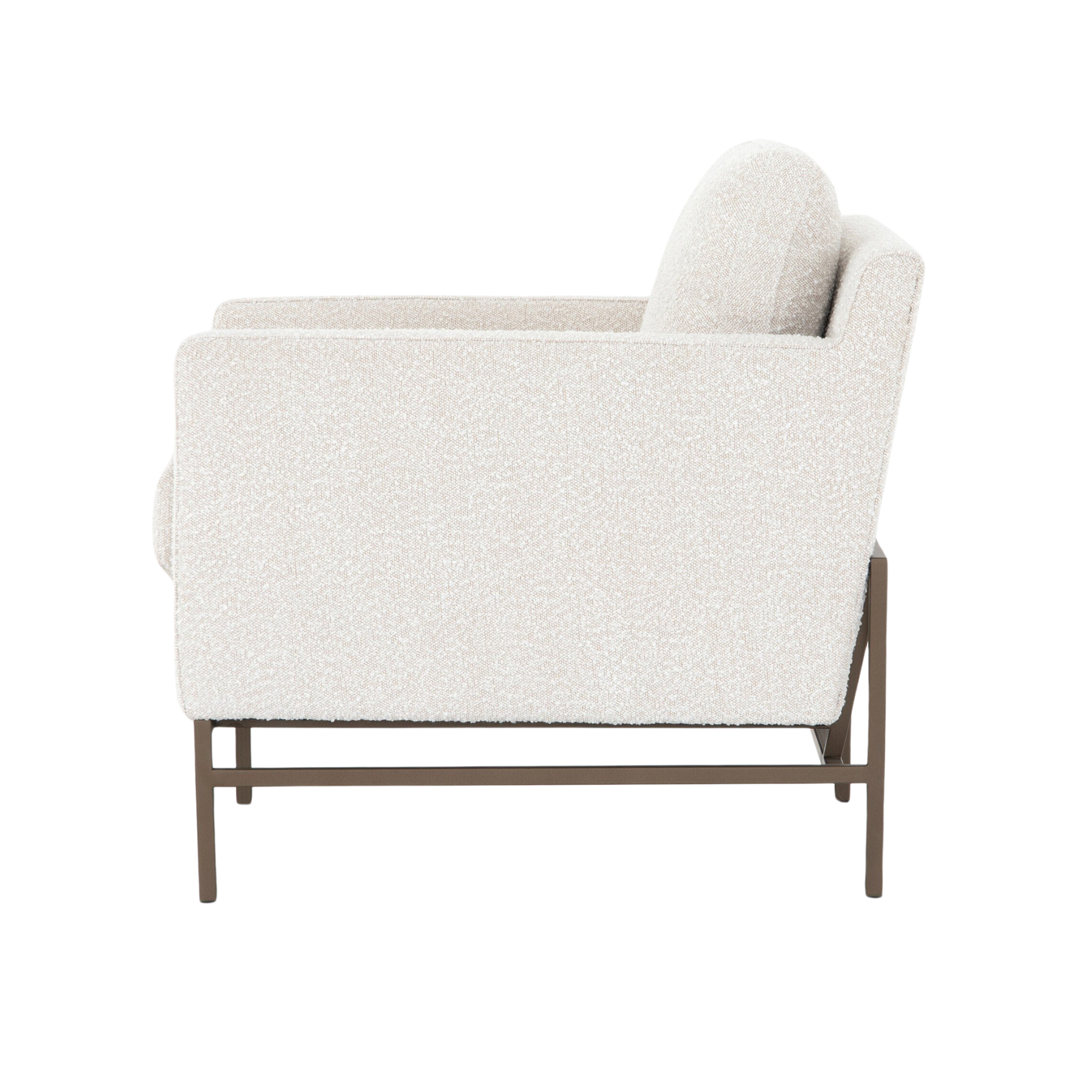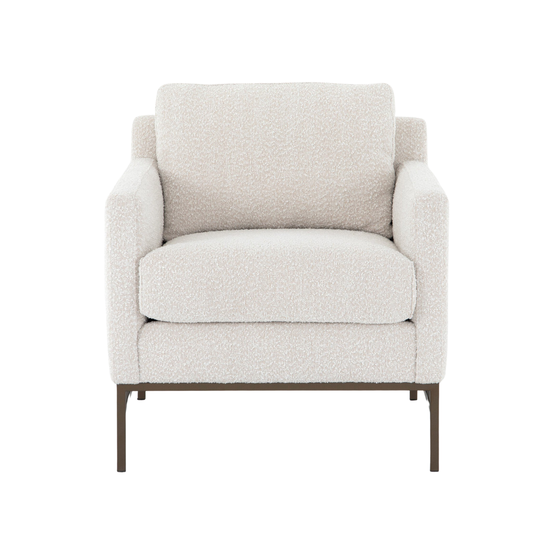 Experience the ultimate in comfort and style with the Brynn Chair. The plush, boucle-like upholstery and thick cushioning provide a cozy place to relax, while the modern design, featuring clean track arms and a bronze-finished iron base, adds a touch of sophistication to any space. Upgrade your seating experience with the Brynn Chair today.
