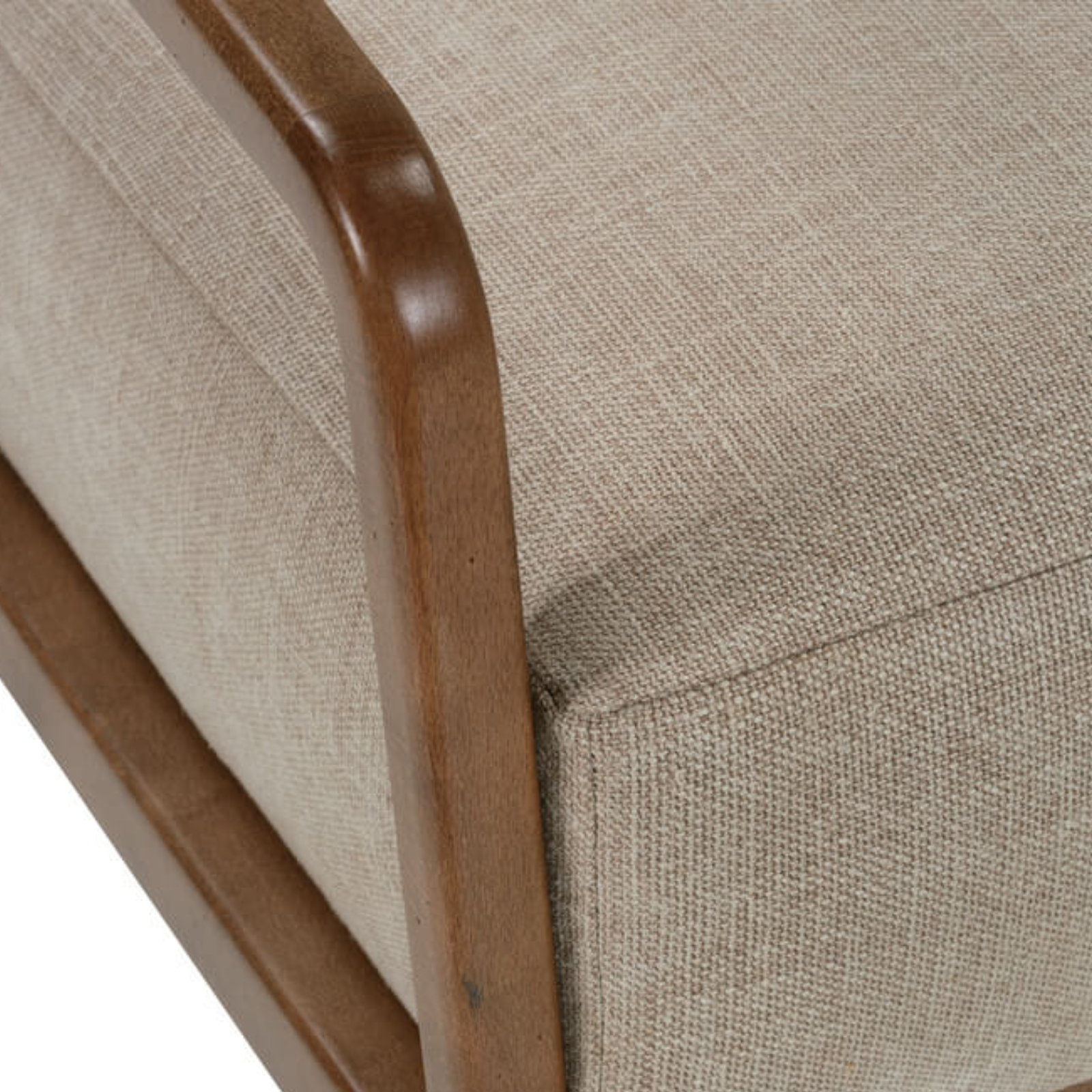 Our Pfifer Chair combines an open and airy silhouette with tailored upholstery, featuring a warm wood frame that perfectly complements the look and feel of washed linen. Our Countess fabric is 100% natural linen that is washed and tumbled to a soft, appealing finish that highlights its subtle variations in shade and texture.