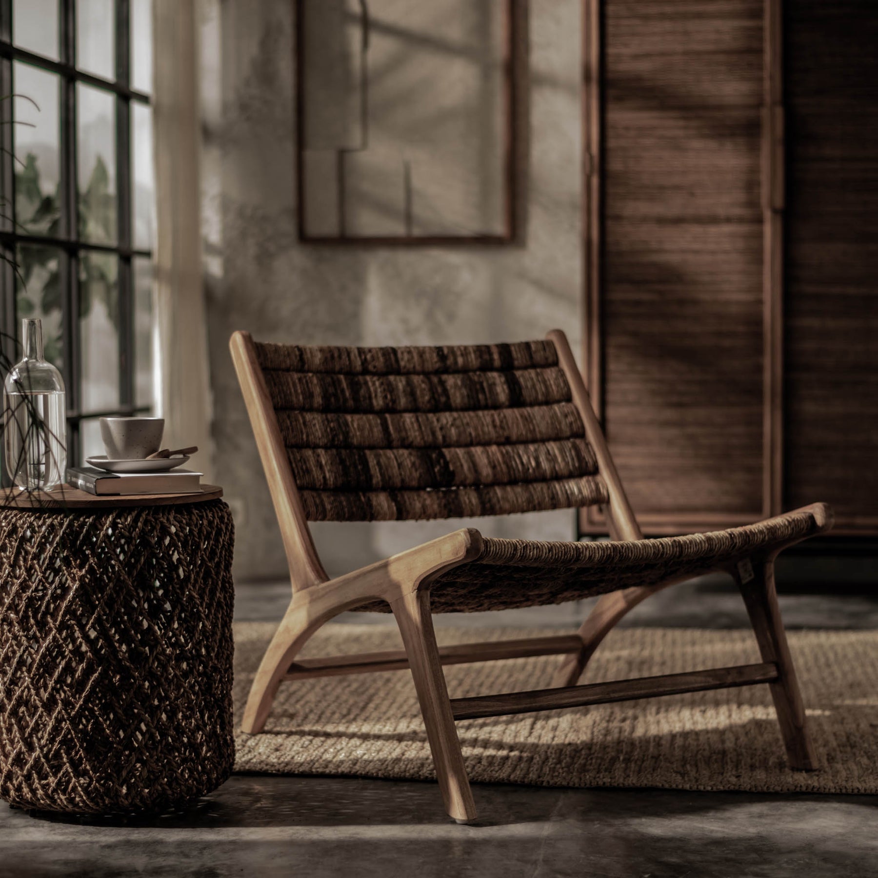 Inspired by traditional Javanese design and craftsmanship, this piece is crafted with care from naturally sourced materials. The frame of the chair is carved from reclaimed teak wood while the seat is made of hand woven abaca. Evocative of rustic and timeless island living, this chair is perfect for your home.