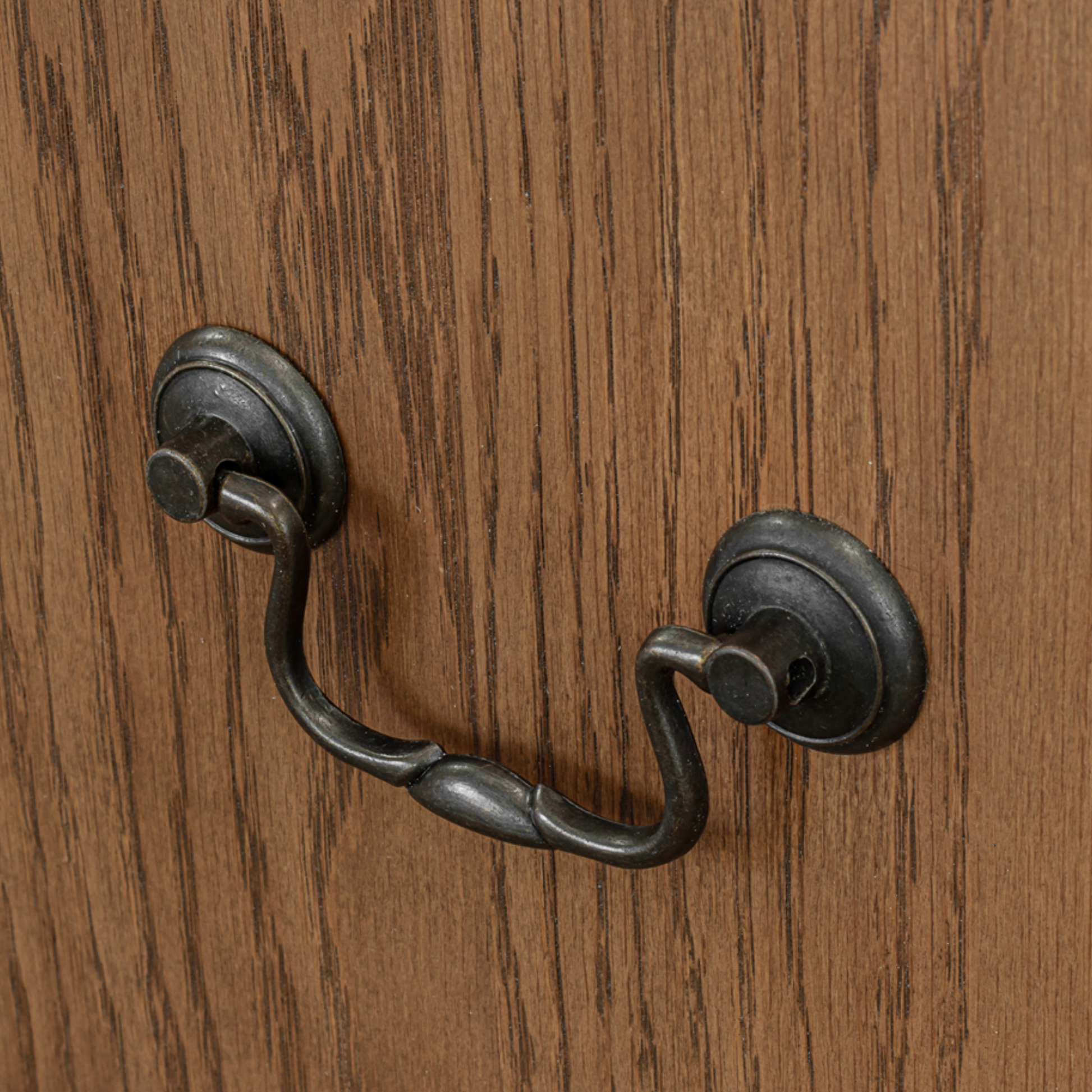 Discover the elegant and functional Claude Bookcase. Its overhanging top and curved front legs create a graceful silhouette, while the rounded edges on the bottom drawer add fluidity. The mid-tone brown finish with a wire-brushed texture complements any style, and with four fixed shelves and a storage drawer, it offers ample space.