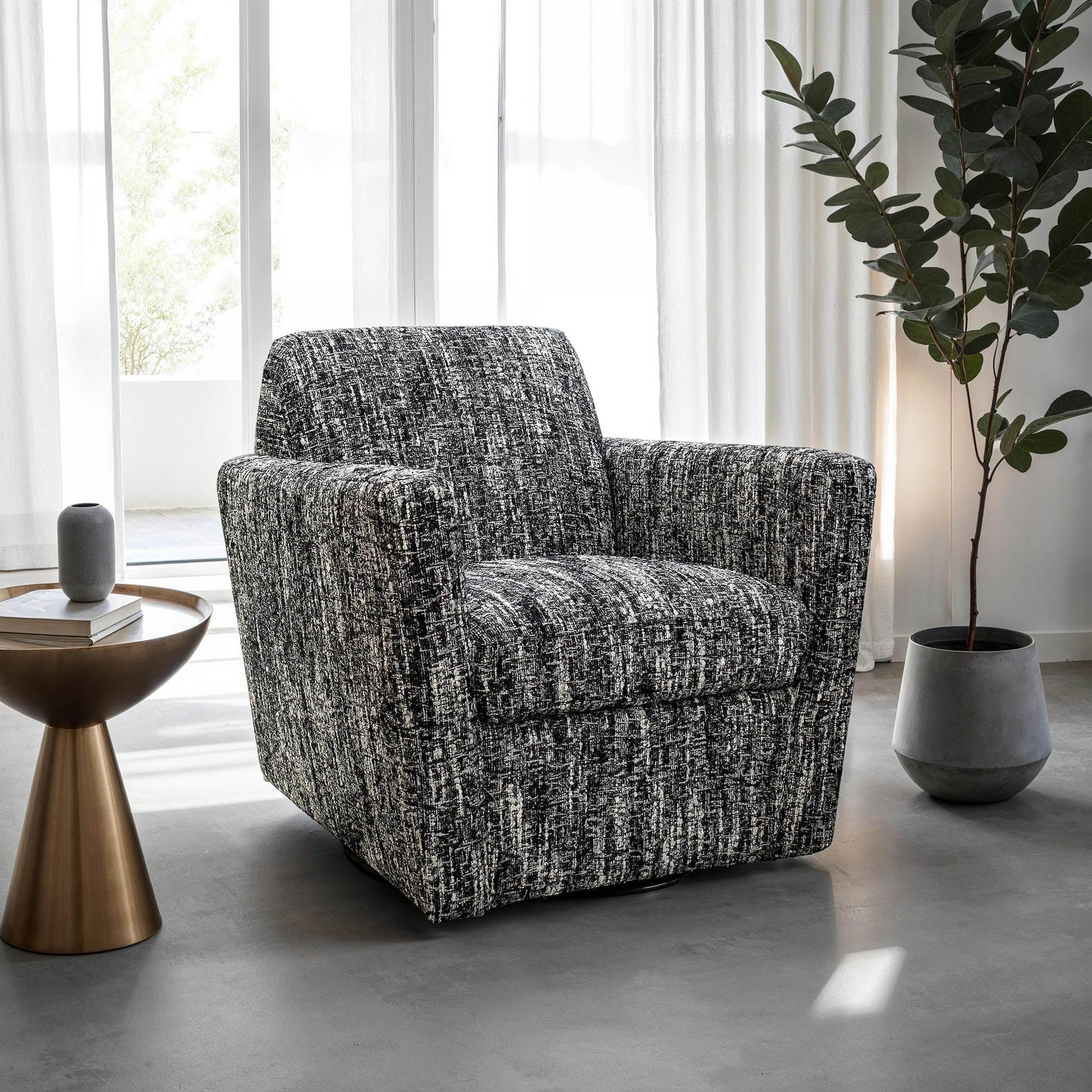 The Calder Swivel Club Chair offers a versatile blend of eclectic and modern design, featuring a 360-degree swivel base for effortless movement. Available in a curated selection of fabrics and leather, it allows you to customize your space with both style and comfort. Expertly crafted, this chair complements a variety of interiors while providing practical functionality.