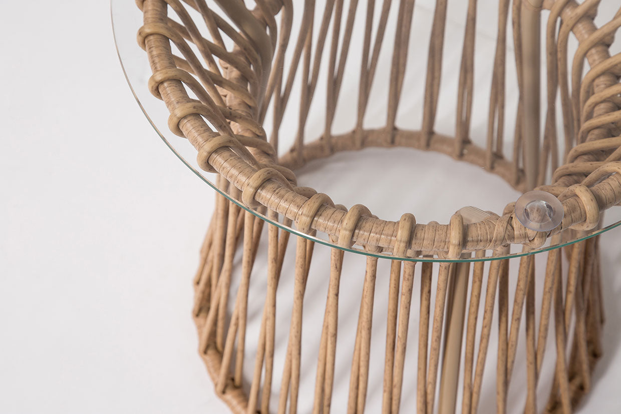 We cannot get enough rattan and wicker. Ever. Designed to be used indoor and outdoor, our Cora Accent Table makes an elegant statement poolside, on the patio and in the living room. Perch your drinks on the tempered glass top that sits on the most adorable resin rattan woven base. Charming and made to last, this piece adds boho charm and updated design to just about any space.