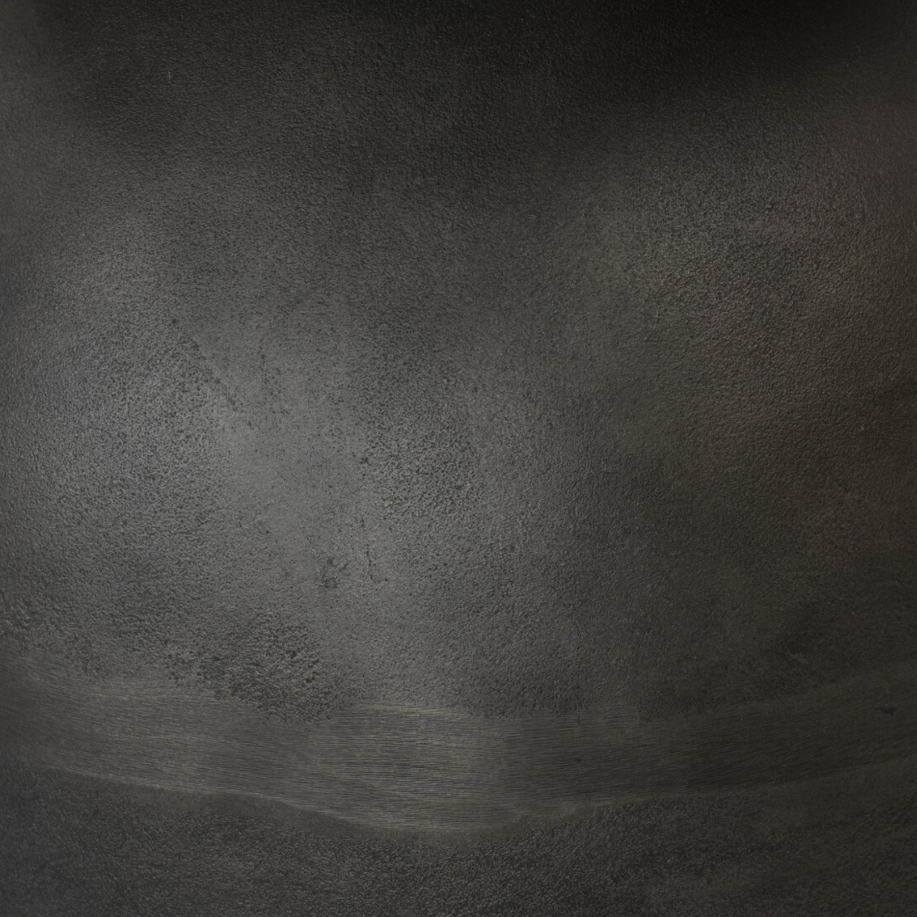 The Corbett End Table artfully combines form and function with its striking sculptural design. The distinctive hammered aluminum base in a sophisticated grey finish creates a sturdy foundation for the smooth, rounded tabletop crafted from polished black marble. Natural veining patterns in the marble add unique character to each piece, making this end table both a practical surface and an elegant artistic statement for your living space.