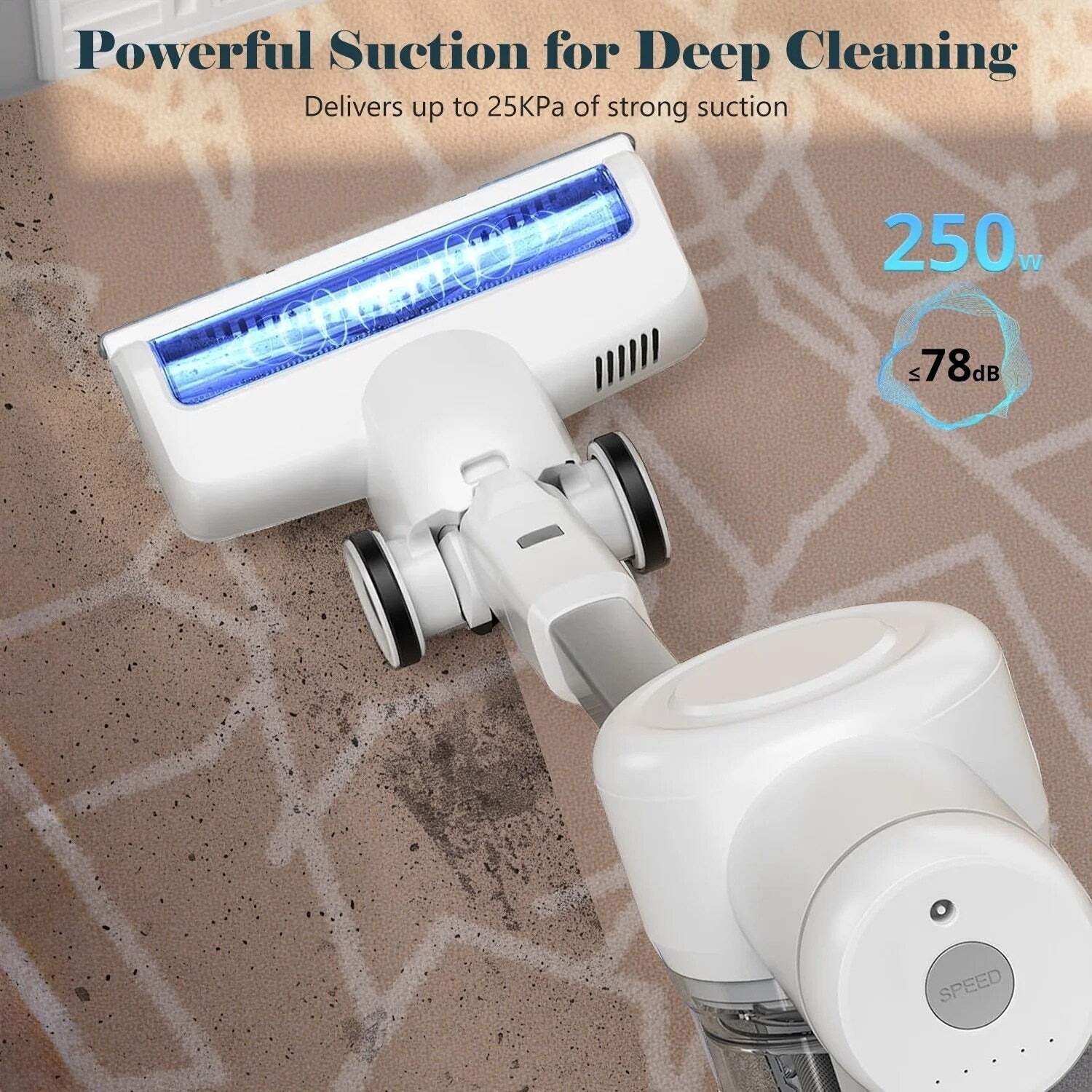 - [Powerful Suction]: Three suction modes allow customization for daily cleaning (eco-mode) or tougher tasks (high suction), easily switched with a single button.The updated corded stick vacuum features a brushless motor, delivering up to 25KPa suction for effective cleaning on all floor types and short carpets.