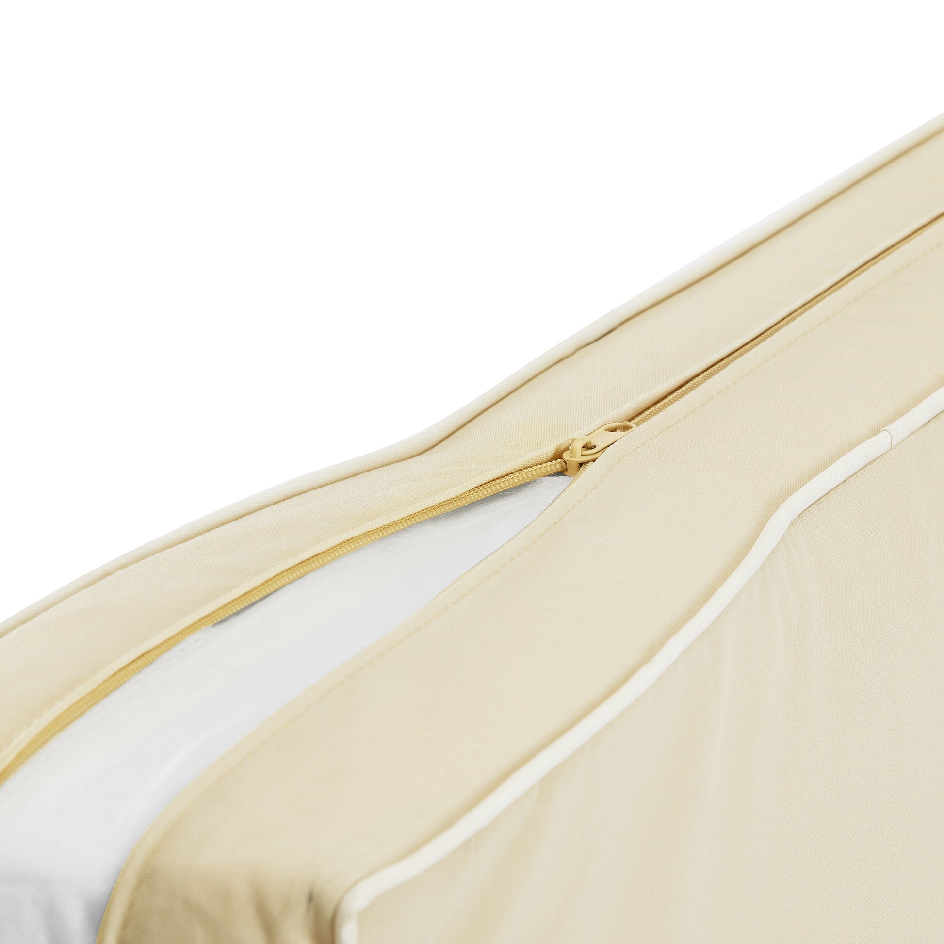 - Cushion covers in gray, navy, deep sangria, neutral sand, or white with contrast piping