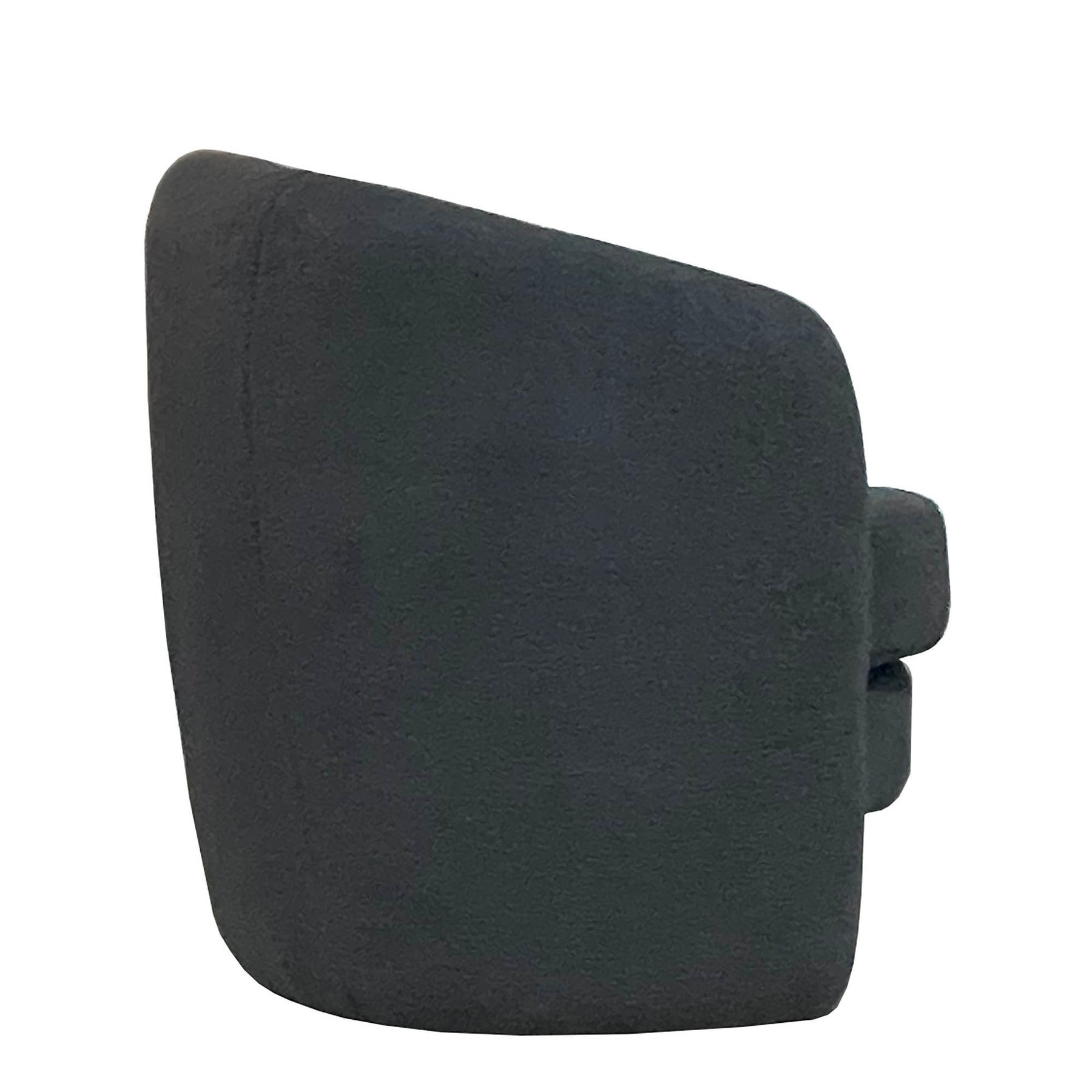 High style meets everyday sensibility. The dark grey plush fabric covers the entire silhouette in a comfortable rounded backrest exuding a sophisticated and timeless elegance. This contemporary design adds texture and shape to any dining space, making it a great accent chair.