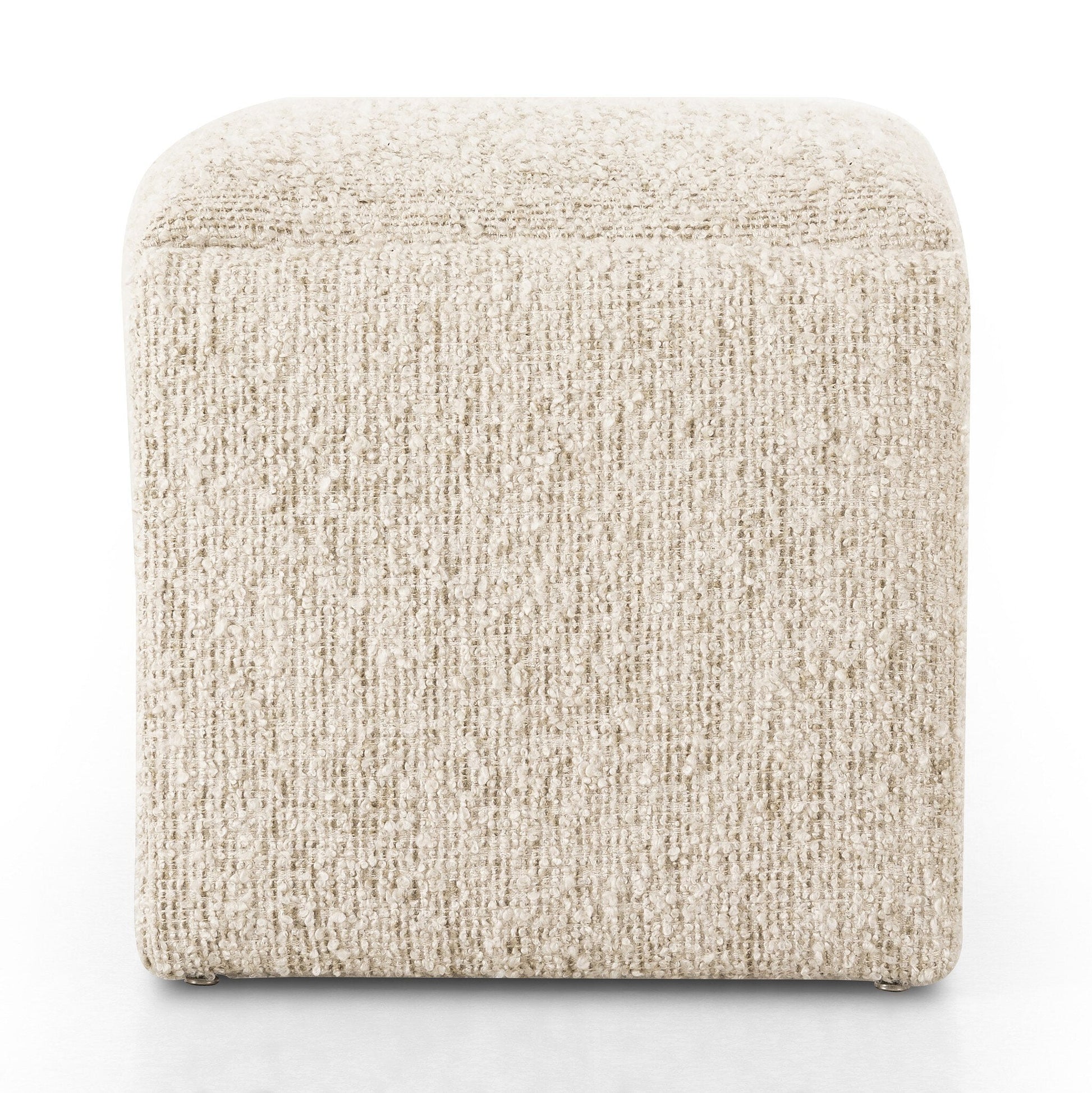 A playful take on a classic form, this ottoman's curved top and angled legs add interest and fun to any corner of the room. The Turkish-made boucle blends brushed and pulled lines creating extra depth for a luxe feel and look. Style by itself or double for extra impact.