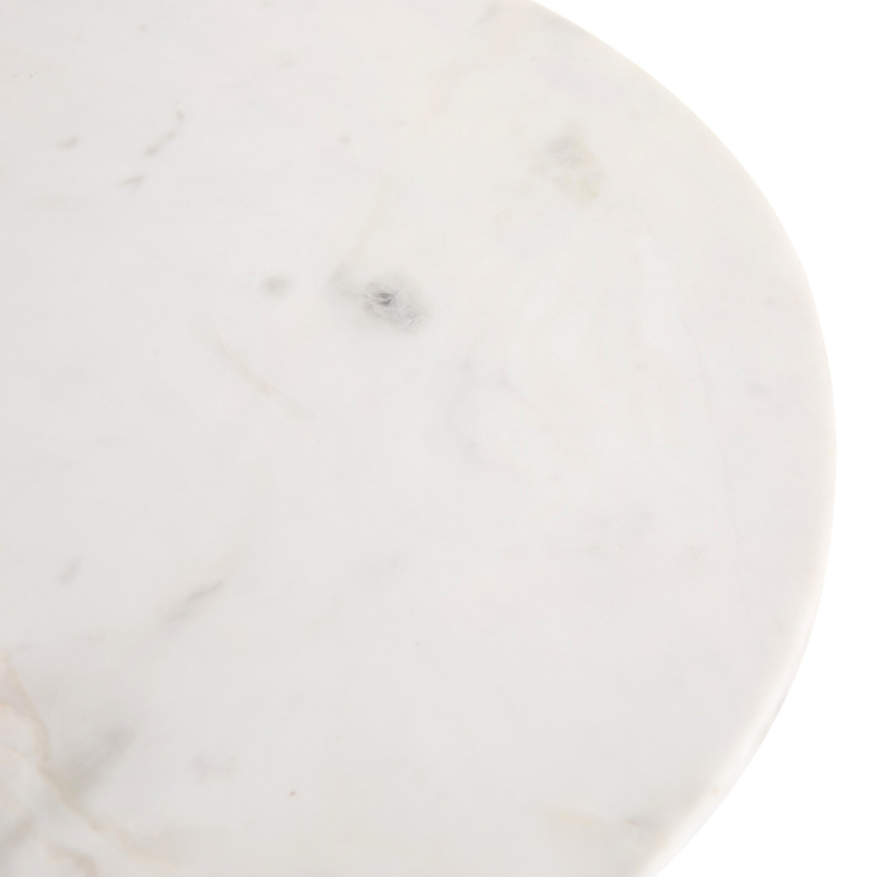 Indulge in sophistication with the Desirae Side Table. Its sculptural aluminum base and polished white marble top are a work of art, adding intrigue and luxury to any space. Experience the beauty and elegance of this dramatically scaled pedestal table.