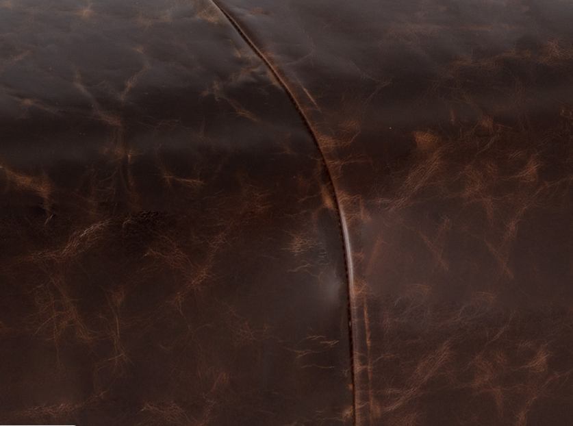 With its vintage and versatile design, this Italian-made ottoman can be perfectly arranged in various settings. Upholstered in our chocolate 100% Italian bovine leather for lasting quality. This fine, pure aniline leather is barrel-dyed, treated with oil and finished with wax to showcase the beautiful, natural elements of the hide. Completed with double density foam for added plushness. Also stocked in natural grain cognac leather.