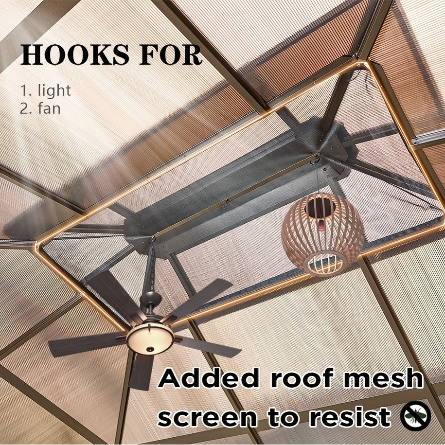 This gazebo features an advanced double-roof design with elevated ventilation spacing, enhancing airflow for a fresher experience. The intelligent ventilation system, combined with hidden side air vents, continuously draws in fresh air while accelerating hot air upward—keeping you cool even during peak summer heat. Enjoy the perfect balance of full shade coverage and natural breezy comfort, whether hosting gatherings or relaxing alone—just like resting under a refreshing tree canopy.