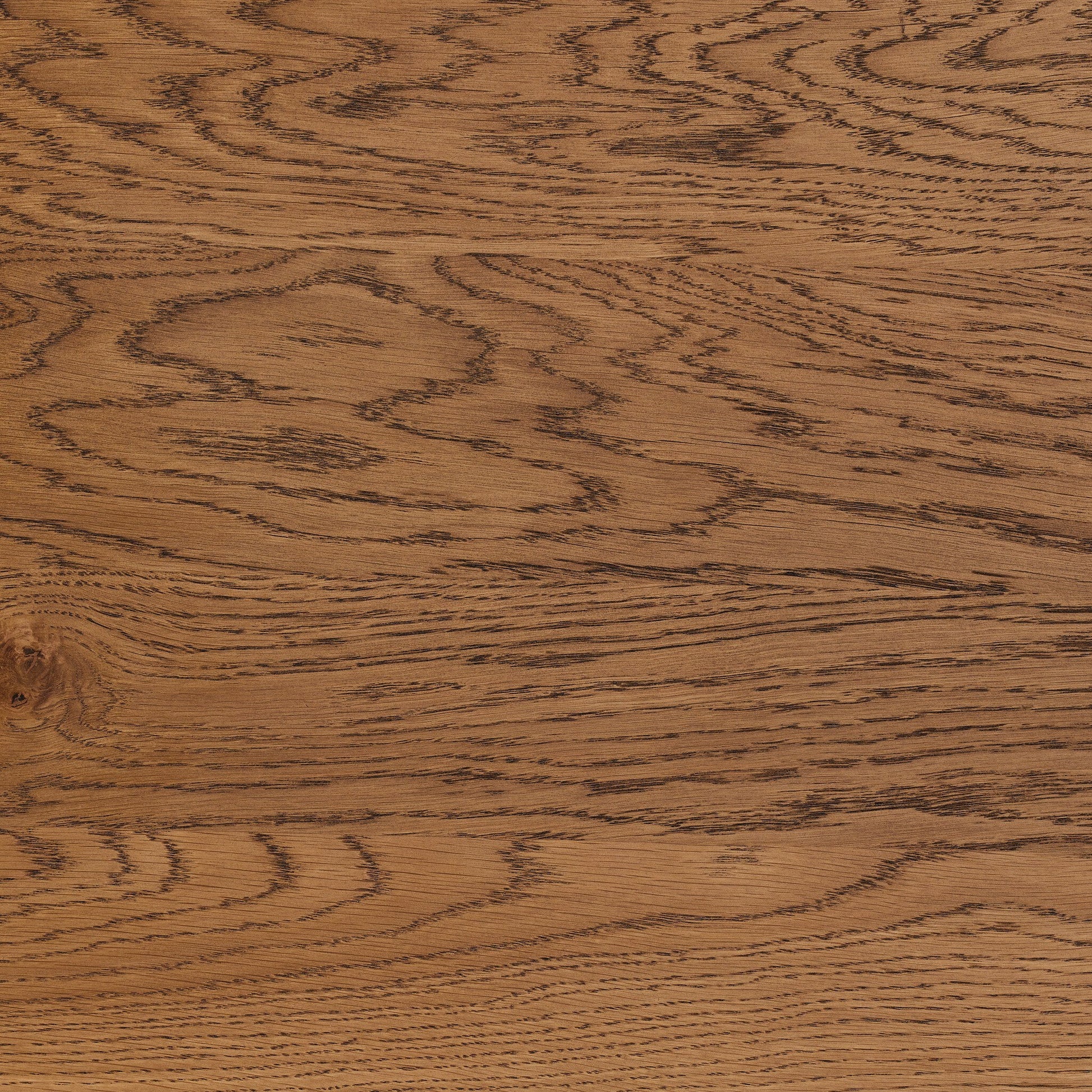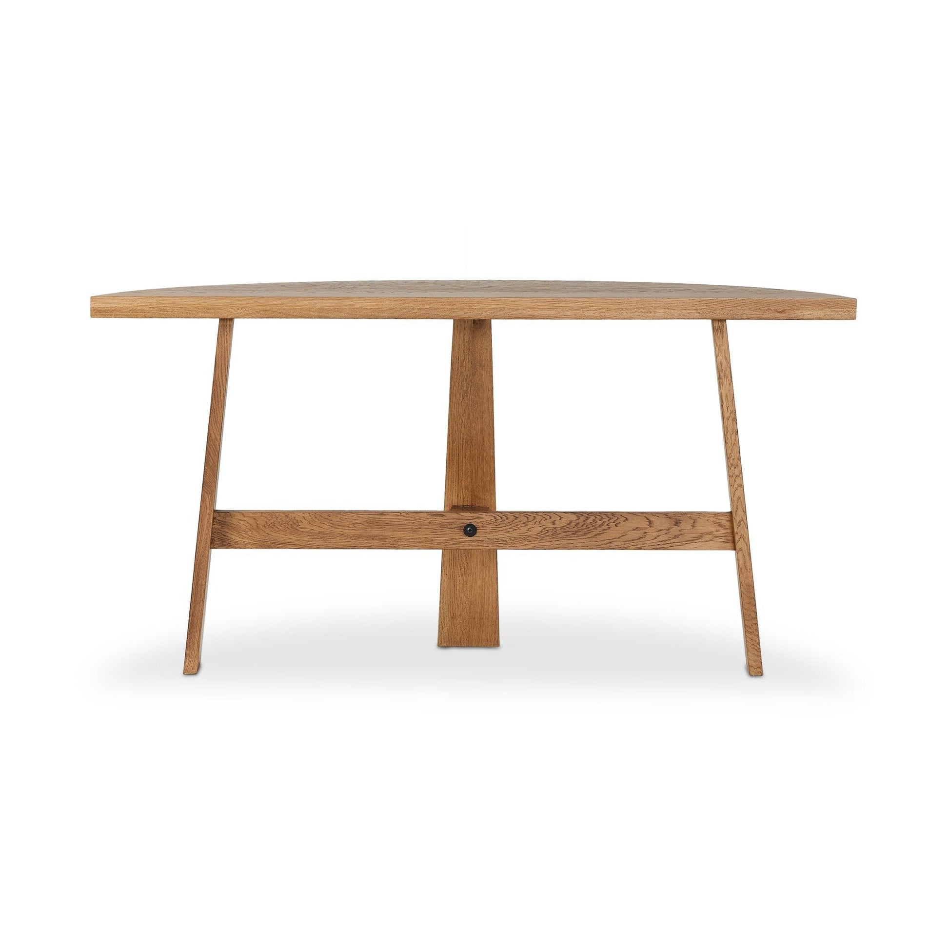 Crafted from light brown oak, this console table features a tripod base and a uniquely-shaped tabletop for a simple yet artistic look.