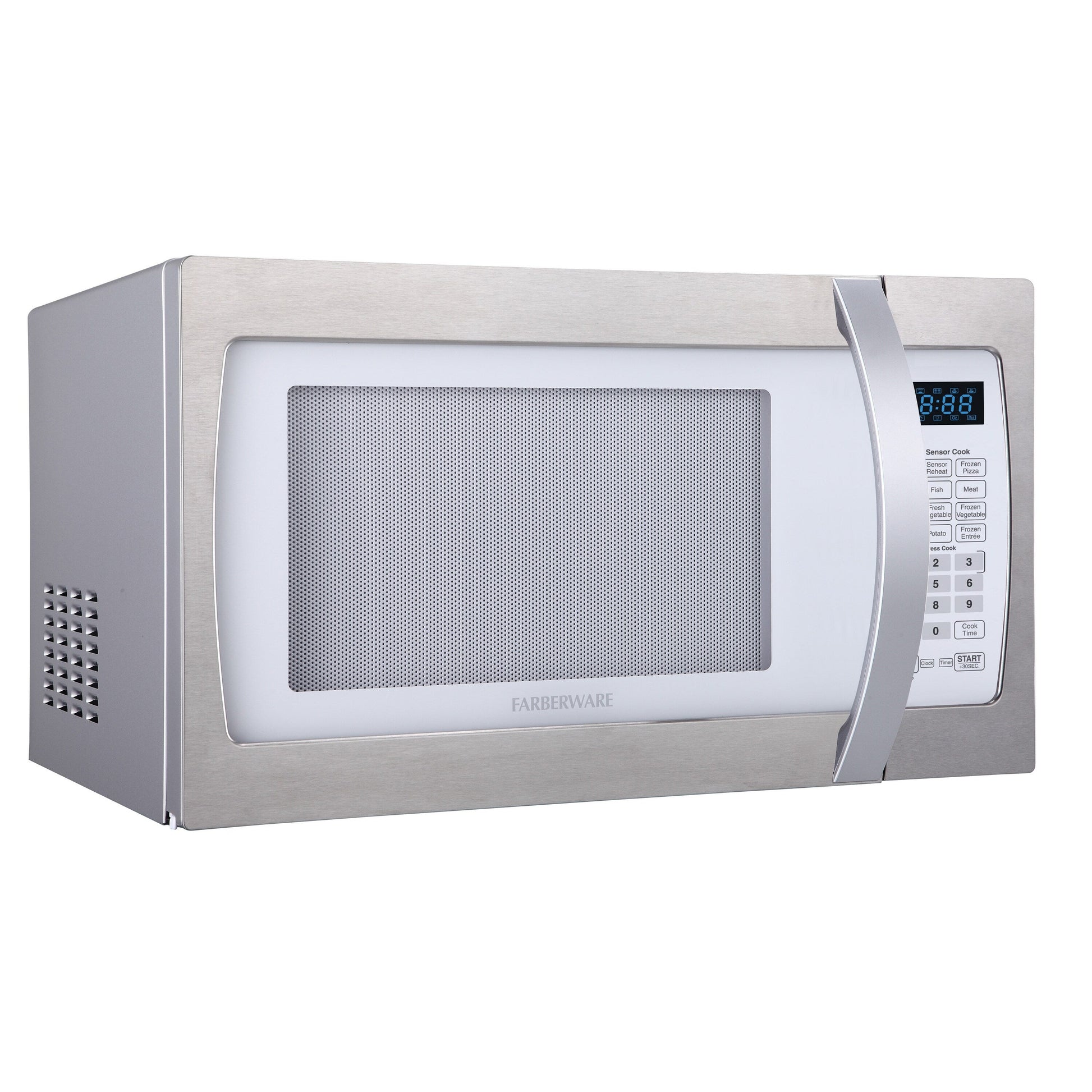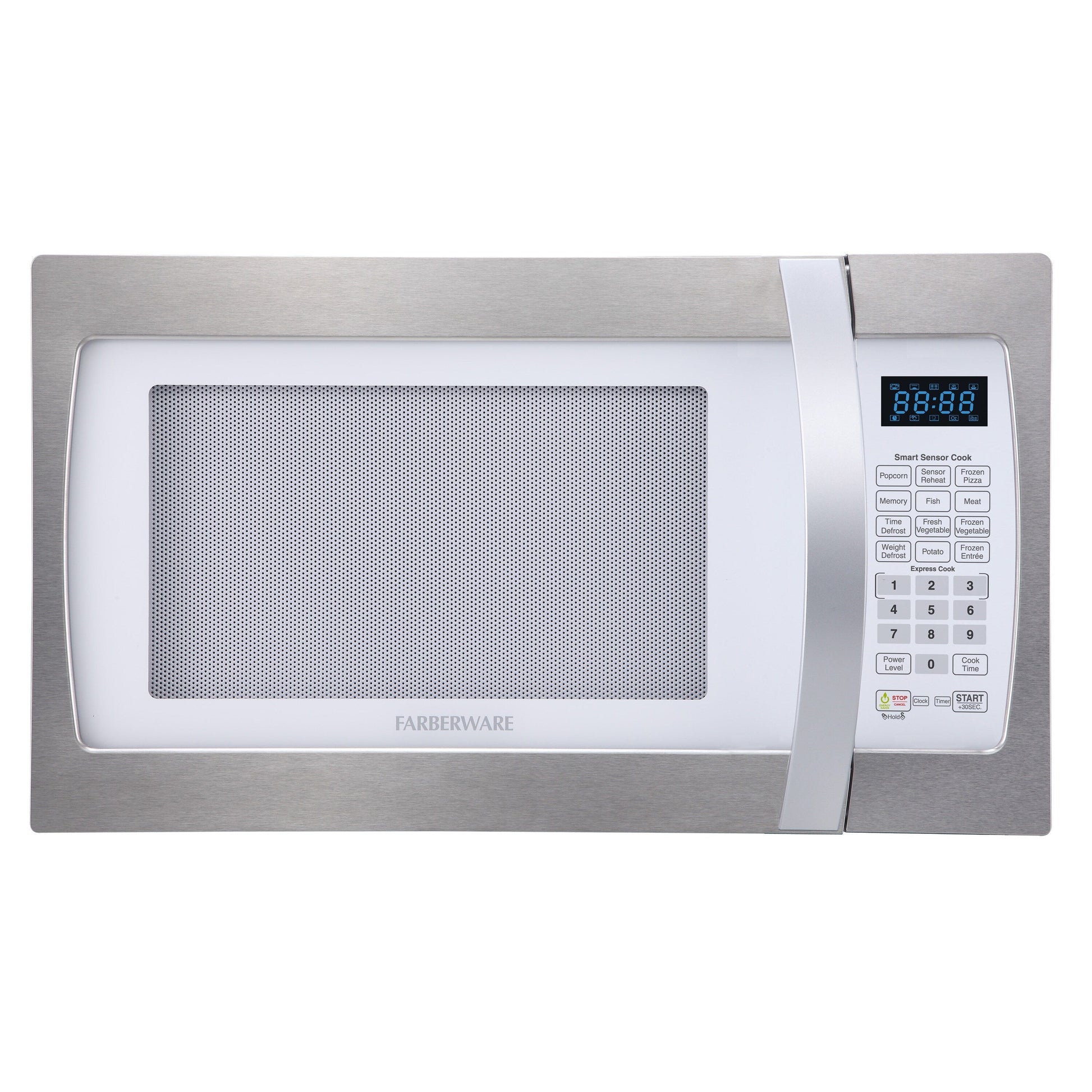 Farberware Professional 1.3 Cu. Ft. 1100-Watt Microwave Oven with Smart Sensor Cooking, White and Platinum