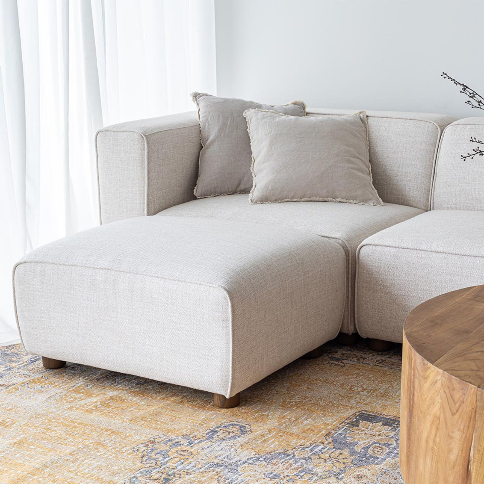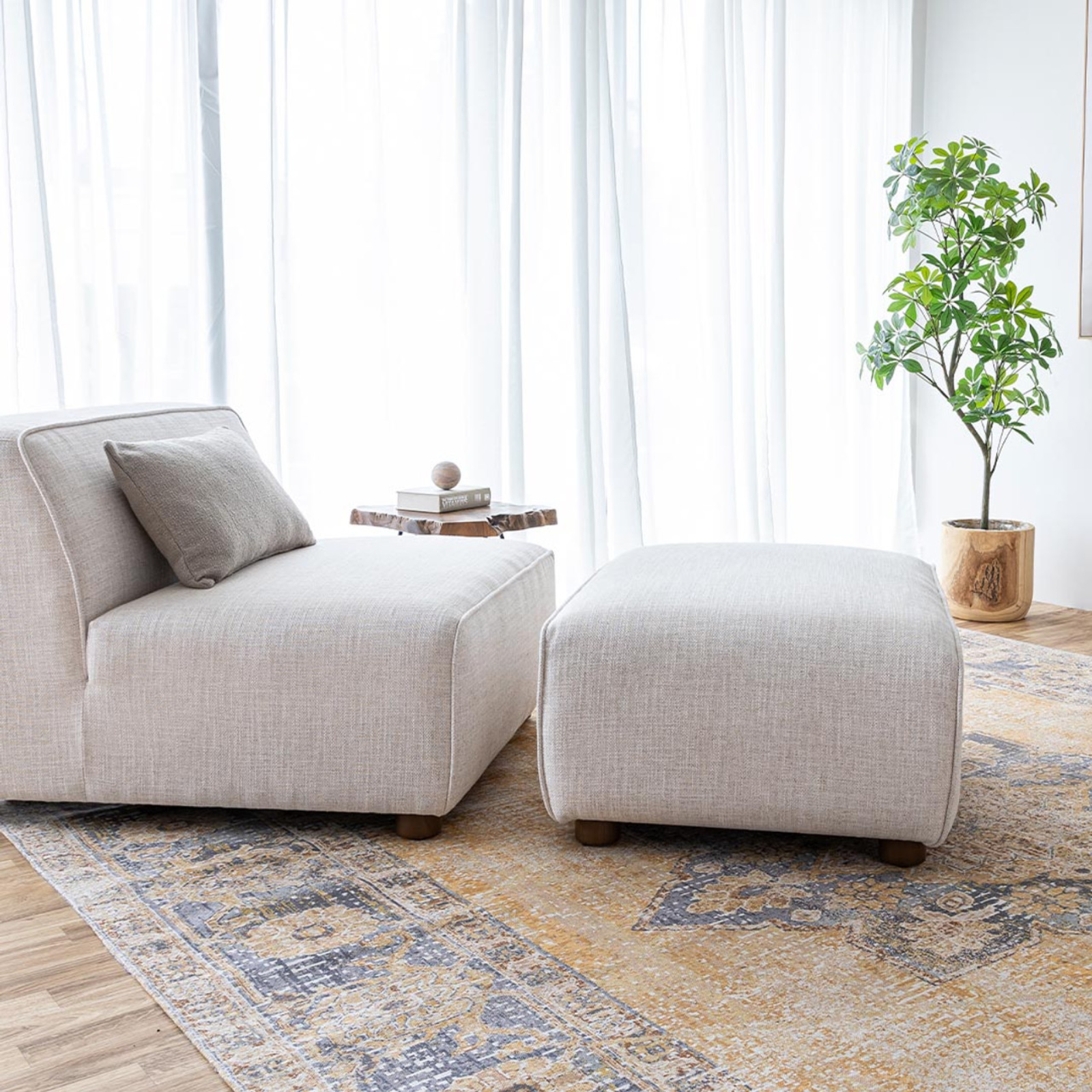 Indulge in unparalleled comfort and versatility with our luxurious Fia sectional, meticulously designed to offer the ultimate in flexibility and style. Featuring plush, deep seats enveloped in sophisticated cream performance fabric upholstery, this sofa invites you to an unrivaled relaxation experience. Its modular design allows for multiple configuration options, effortlessly adapting to any space and style preference. The cleverly hidden clips ensure each piece can stand alone, presenting a sleek, uninterrupted look without the distraction of visible connectors.