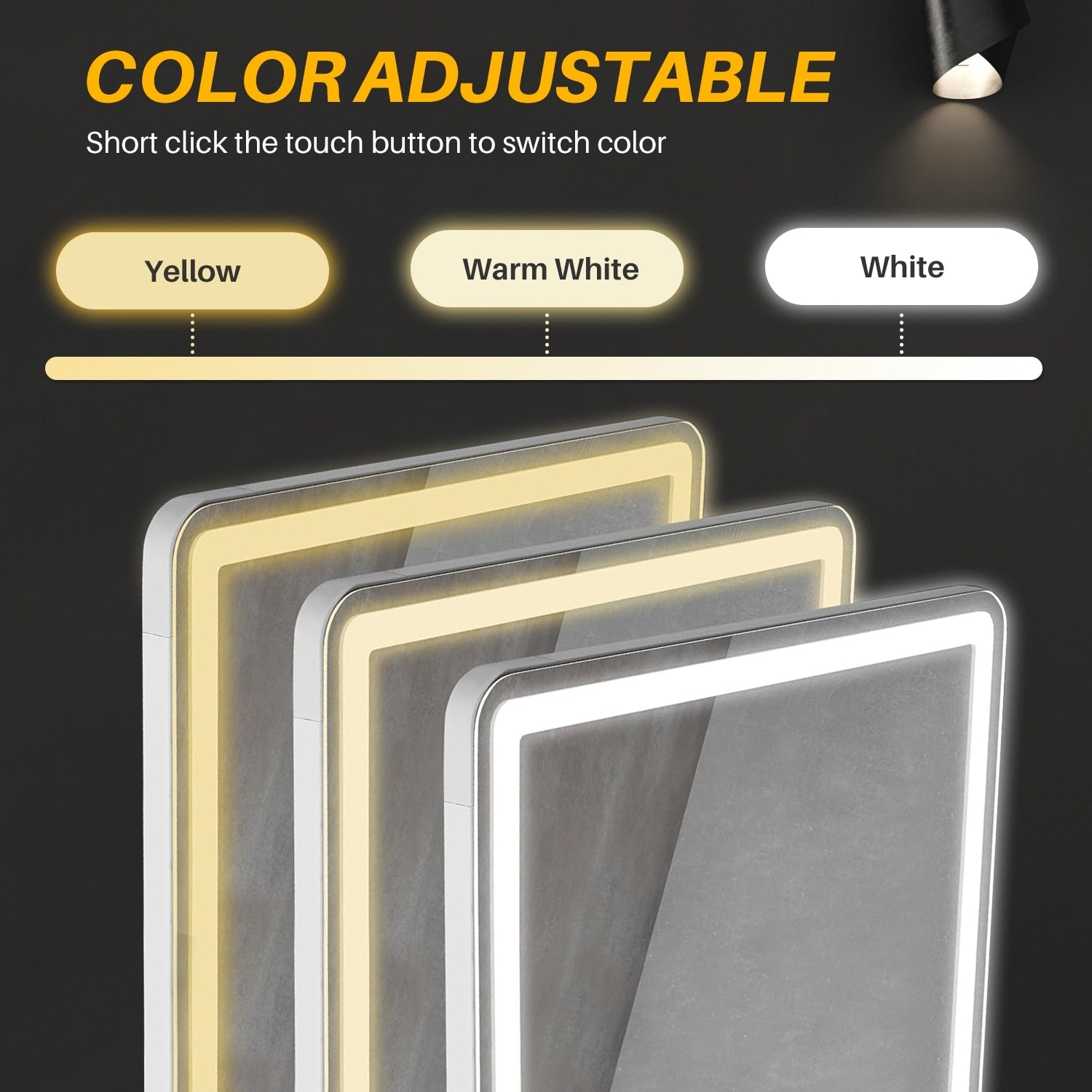 - 【Lighted Mirror】: This full length mirror is equipped with 200 LED beads strip that can be adjusted to your desired brightness and color. Short press the touch switch to change the color temperature into white light, warm light, and yellow light. Long press the switch for seconds to adjust the brightness you like.