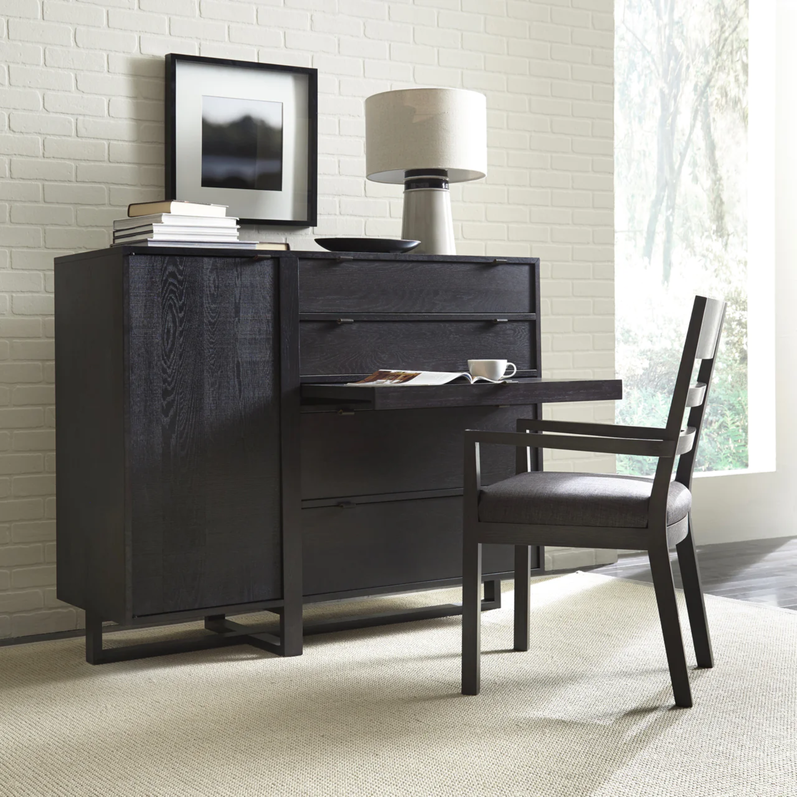 The Folke Media Cabinet is a versatile piece that combines modern design with functionality. Made of solid white oak and available in various finishes, it easily converts into a work station, dresser, or storage unit to suit your needs. Its leather pulls add a touch of elegance and its compact size makes it perfect for any space. Find multiple uses for this must-have piece.