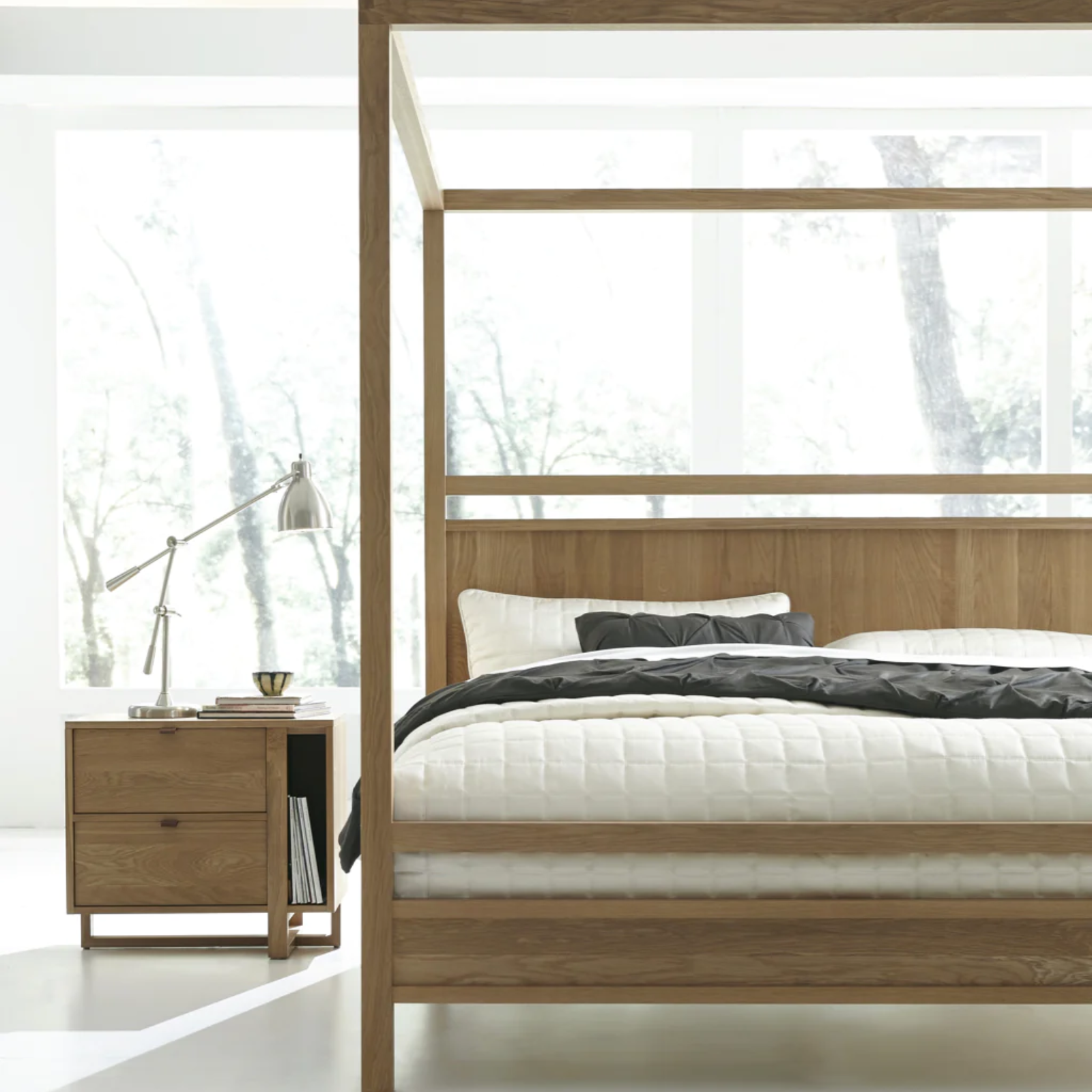 Transform your bedroom into a luxurious oasis with the Folke Upholstered Canopy Bed in Boxter Grey. Made from solid white oak, this contemporary bed exudes a modern, organic feel. The airy design creates a grand, yet inviting atmosphere for a truly comfortable and stylish sleep experience. Elevate your bedroom with the Upholstered Wood Canopy Bed today!