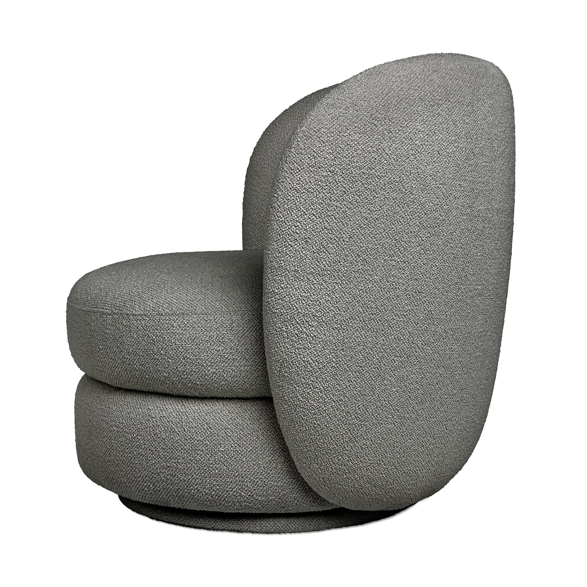 Whether you’re seeking a cozy place to unwind or wanting to add some understated glamour to your living room, the Forme Swivel Chair checks each box with style. Designed in a nubbly bouclé fabric, this elegant design brings both textural warmth and an of-the-moment aesthetic to your decor. Forme rotates smoothly around its axis, allowing it to adapt to the dynamic of the space it inhabits. A high back and sculptural round seat emphasize the cocoon-like shape for a unique perch that will become a charming focal point in any room. Arrange as a standalone accent chair or add another to create a striking pair.