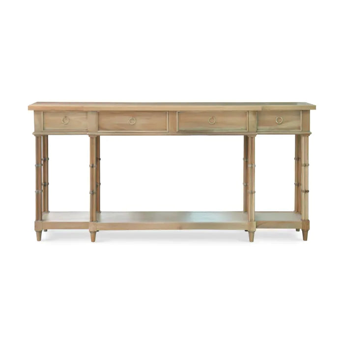 Introducing the Fredrick Large Console - the perfect addition to your home with its charming antique feel and traditional design. Crafted from solid wood, this console exudes elegance and is completed with delicate gold hardware details. Make a statement in any room and add a touch of sophistication to your decor.