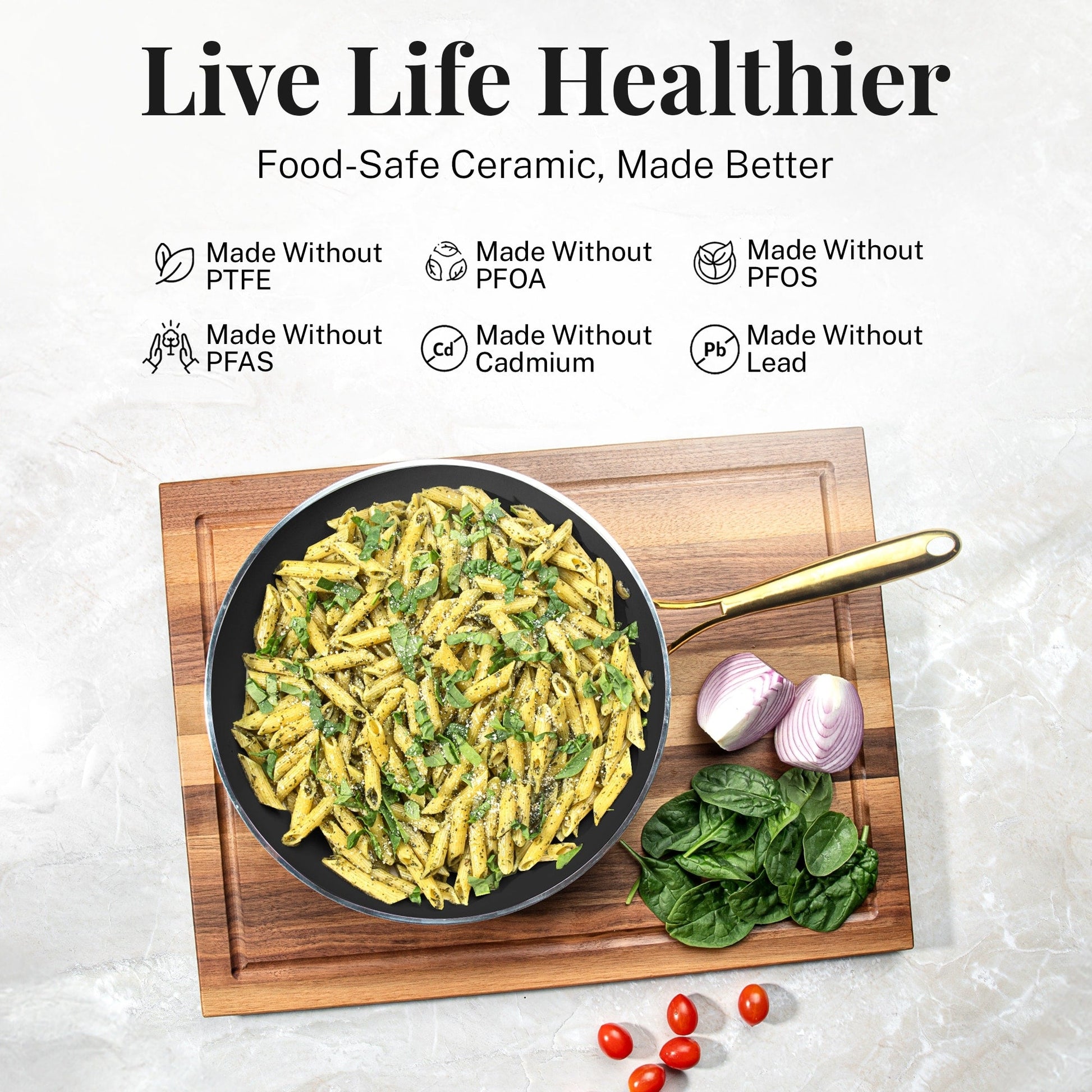 - Safe and Non-Toxic: Made without PTFE, PFOA, PFOS, PFAS, lead, and cadmium, this cookware set promotes healthier cooking for you and your family, making it an eco-friendly and safe choice.
