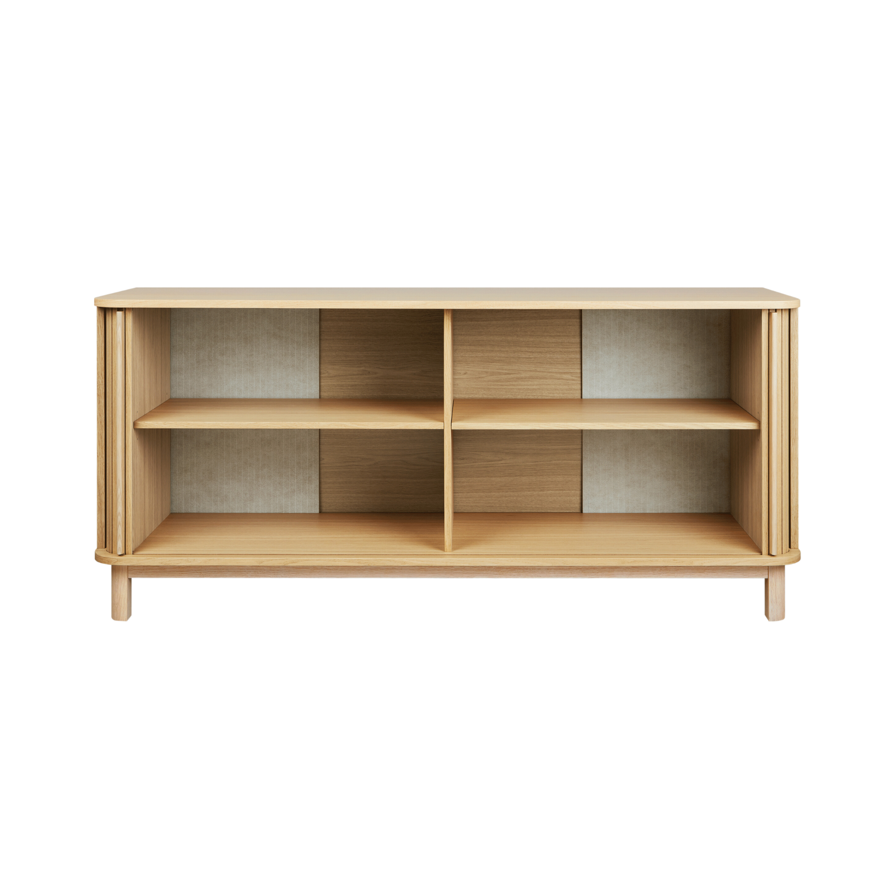 Stylishly reveal or conceal with Ledger, a contemporary storage design that showcases gorgeous tambour wood sliding doors, elegant proportions and skilled craftsmanship. Whether you’re looking for a clever solution to conceal clutter or an attractive way to display objects and collectibles, Ledger provides the answer. The tambour doors, which open smoothly into the back of the cabinet, prove that beautiful form follows function, displaying a simplicity of design engineering without the use of hardware and fasteners. Components incorporate graceful curve details and warm woodgrain protected with an all-natural, zero VOC finish. Solid and engineered wood throughout is FSC ®-Certified, ensuring material is sourced from well managed forests to support a healthy environment.