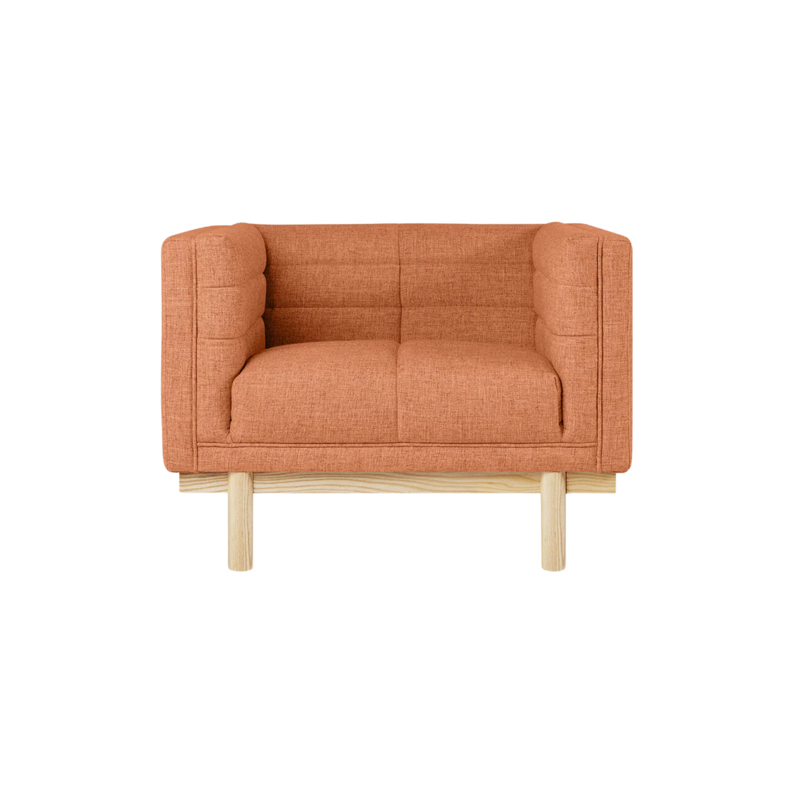 Drawing inspiration from both mid‐century and contemporary influences, the Mulholland Chair is a tailored design with distinctive tufting on the seat, arms and back that creates subtle character and an attractive, modern aesthetic. With no cushions to adjust, the tuxedo‐style frame creates an enveloping space where everything stays in place and looks beautiful day after day. An eco‐friendly, solid wood perimeter base with notched‐dowel leg details softens the overall look and adds warmth to the design. All wood inside and out is FSC®‐certified in support of responsible forest management. Part of the Mulholland Series, the Chair matches perfectly with the Mulholland Lounge, Sofa and Bi‐Sectional.