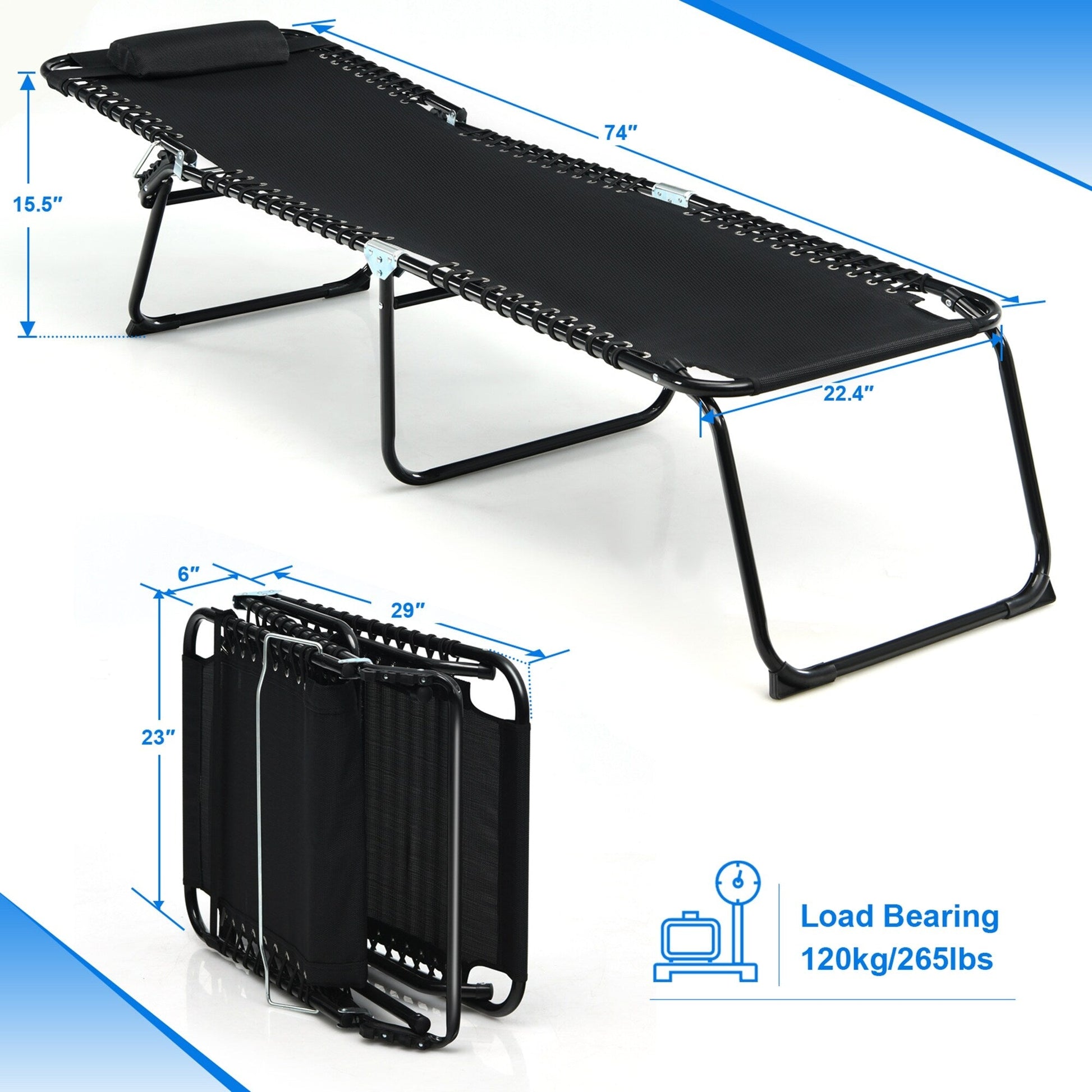 Gymax Folding Beach Lounger Chaise Lounge Chair w/ Pillow 4-Level