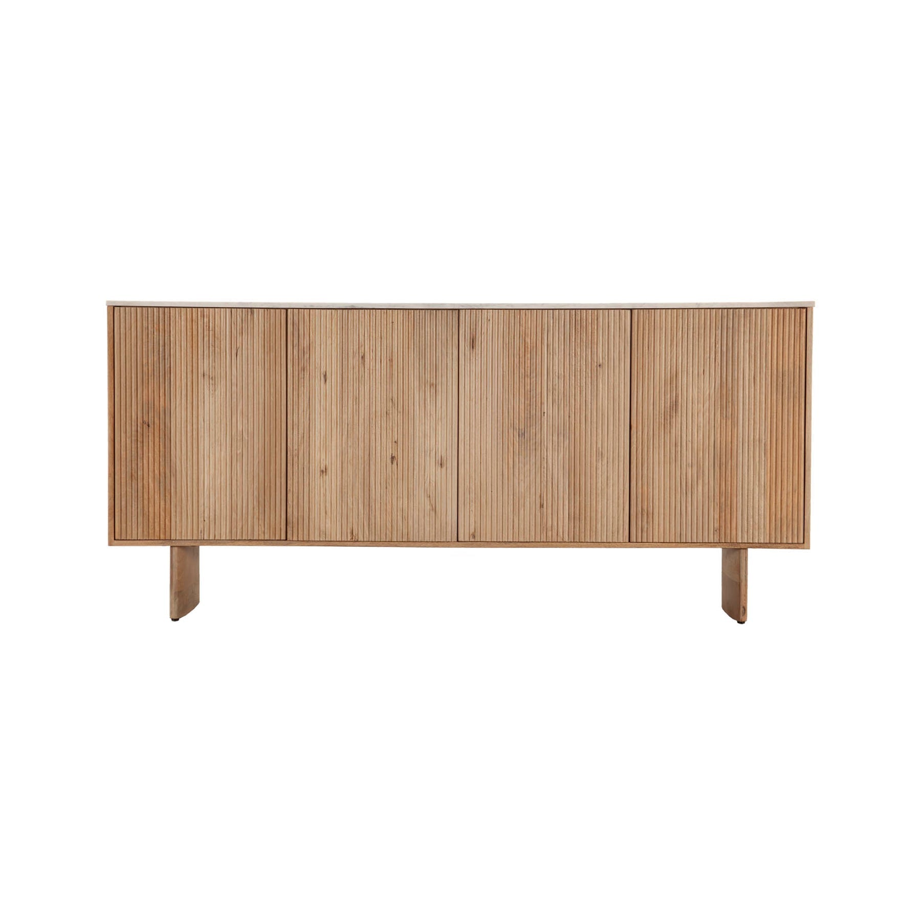 The Heidi Sideboard is an exquisite piece, sure to be the highlight of your living space. Its fluted wood detailing and white marble top bring a touch of elegance, while the ample storage space makes it practical too. With its stunning and intriguing design, this sideboard will make a stunning statement in any home.