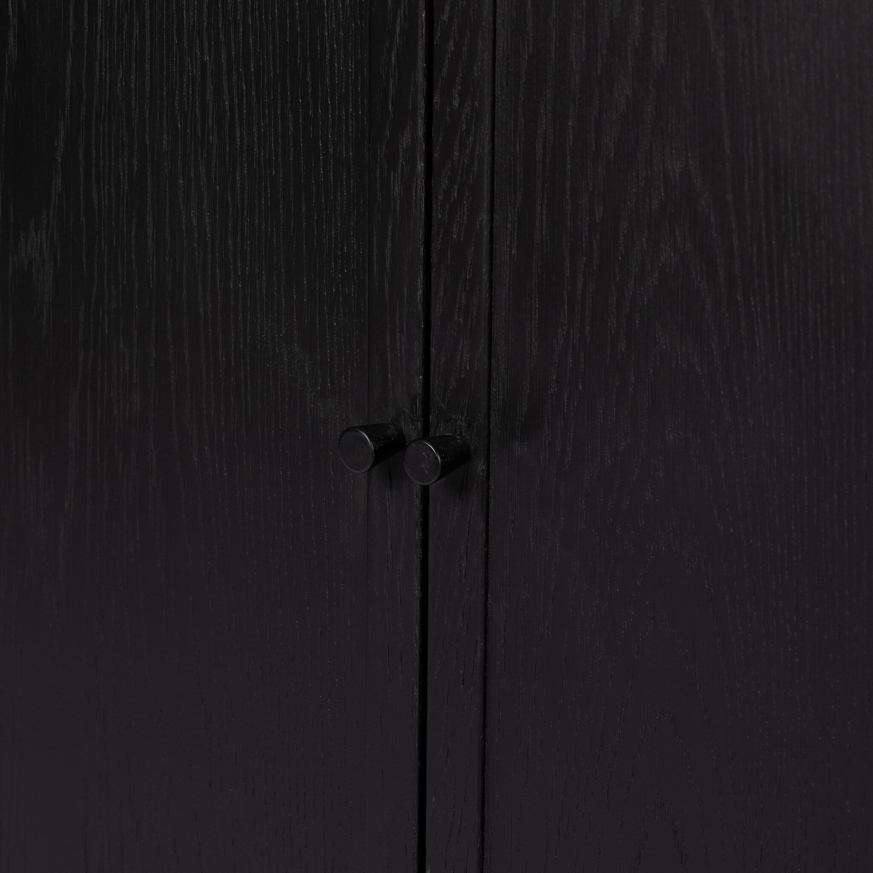 Expertly crafted from solid oak with a sleek ebony finish, the Henderson Bookcase offers both style and functionality. With open shelving and lower cabinetry, this classic piece provides ample storage and display options for any room. Organize your books, decor, and more with ease and elegance.