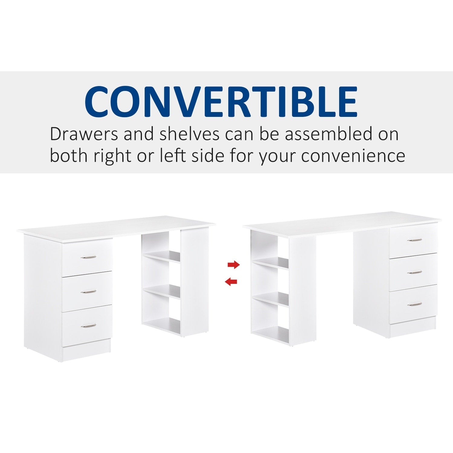●Custom convenience, drawers and shelves can be assembled on both side as you prefer