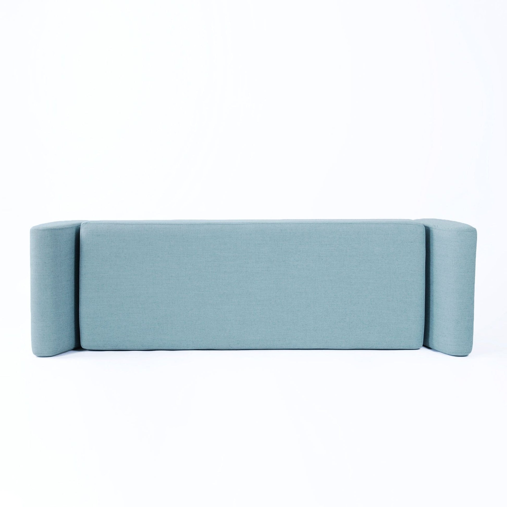 - French Blue Woven Fabric with Natural Finish Wood Legs