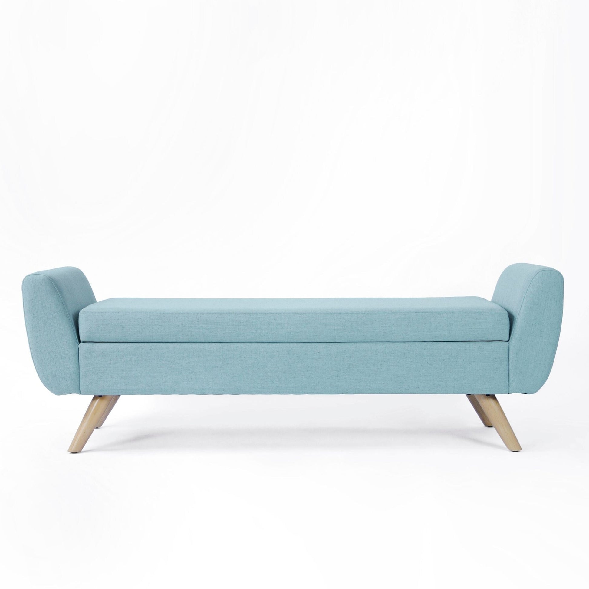 wPlush yet practical, our HomePop Modern Sherpa fabric upholstered Bench with wood legs exudes Mid-Century Modern style and offers a variety of home décor and storage options. Use it as a coffee table ottoman in a living room to serve guests, put it in a family room to prop feet up after a long day, or, place it as an end of bed bench to store pillows and blankets when not in use. Natural finish solid wood legs. Soft textured sherpa fabric, and a safety hinged lid for easy access, our Modern Sherpa storage bench is a premium addition for any home. Easy to assemble and maintain.