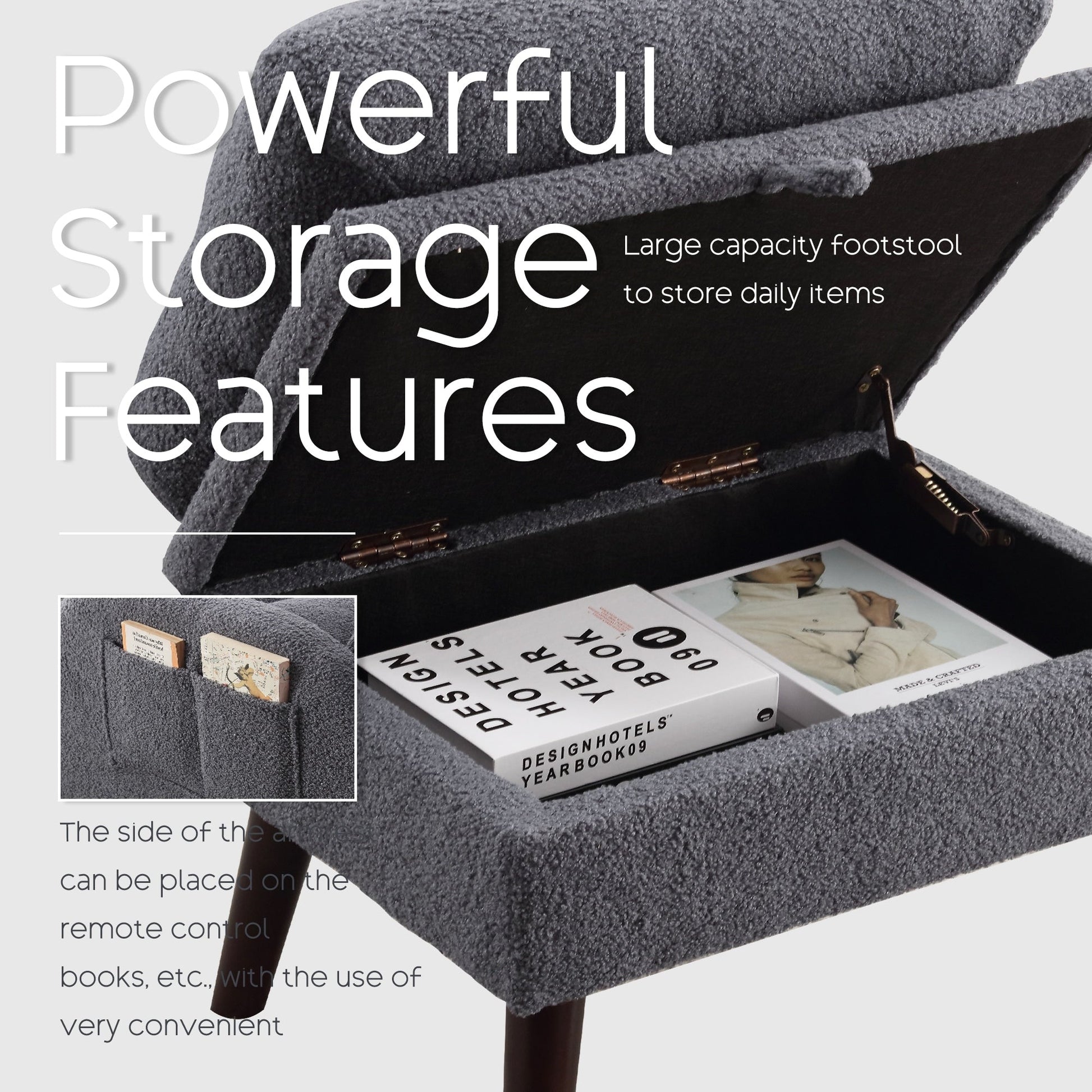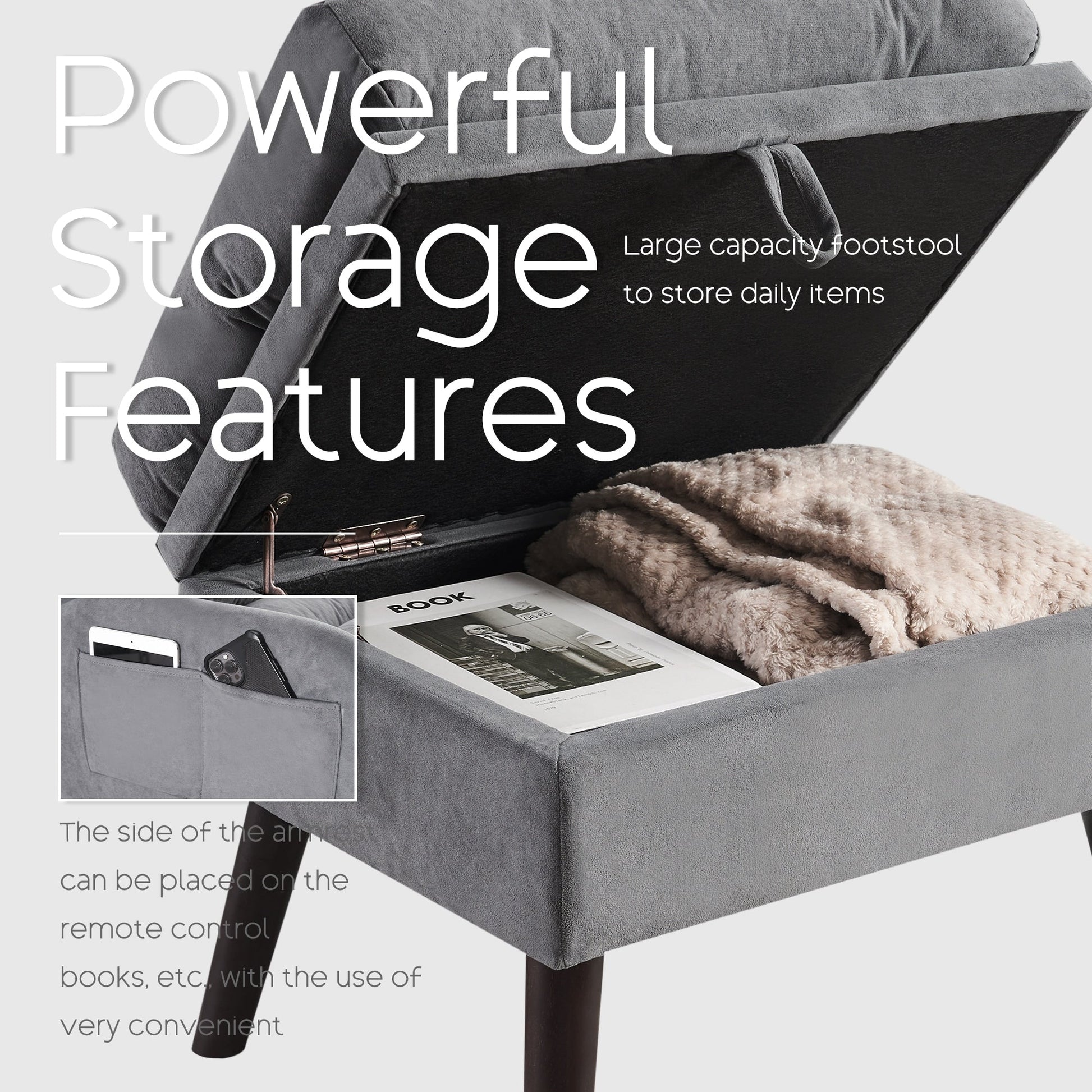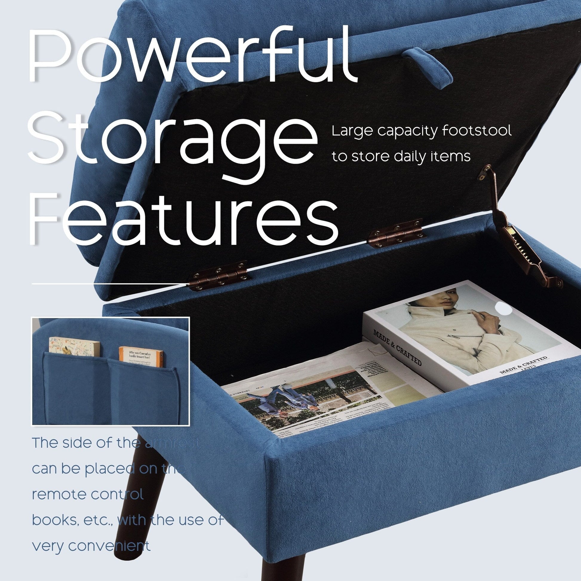 - MULTI-PURPOSE FOR THE CHAIR AND OTTOMAN SET: The ottoman ,apart from being used as a footstool, can also be a small table by removing its cushion.The ottoman has spacious storage for your daily essentials.It is convenient for you to store all kinds of items such as books, remote controls,snacks etc.