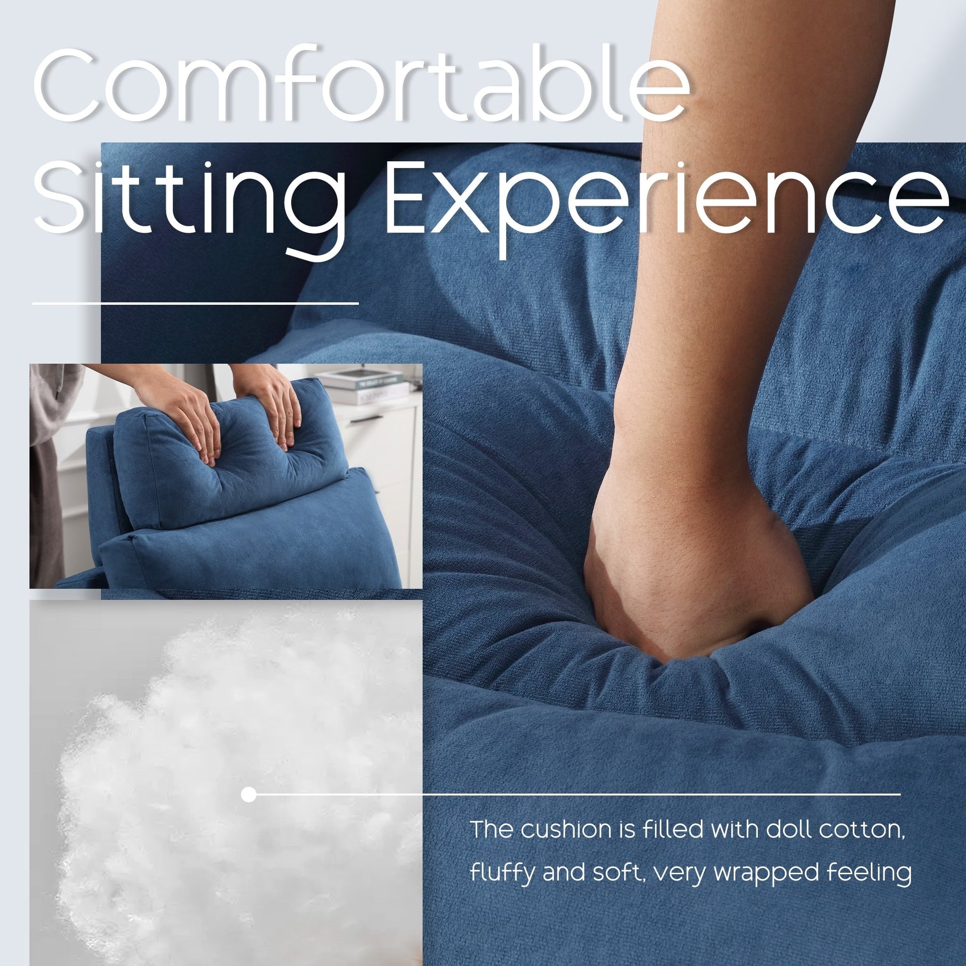 - Adjustable Comfort: Featuring three backrest settings at 110°, 150°, and 180°, this accent chair is designed to accommodate various seating preferences and relaxation needs. Whether you're lounging, reading, or watching TV, you can effortlessly adjust the chair to find the perfect position for optimal comfort.