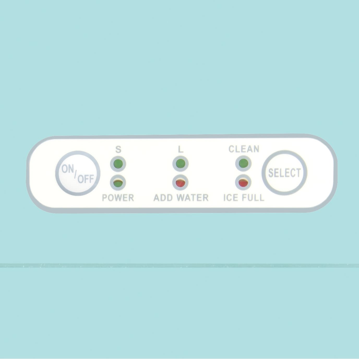 - CONTROL PANEL: Simple to understand and illuminated with LED lights, the electronic control panel lets you know when you need to add water, when the ice basket is full and allows you to choose the size of the ice cubes